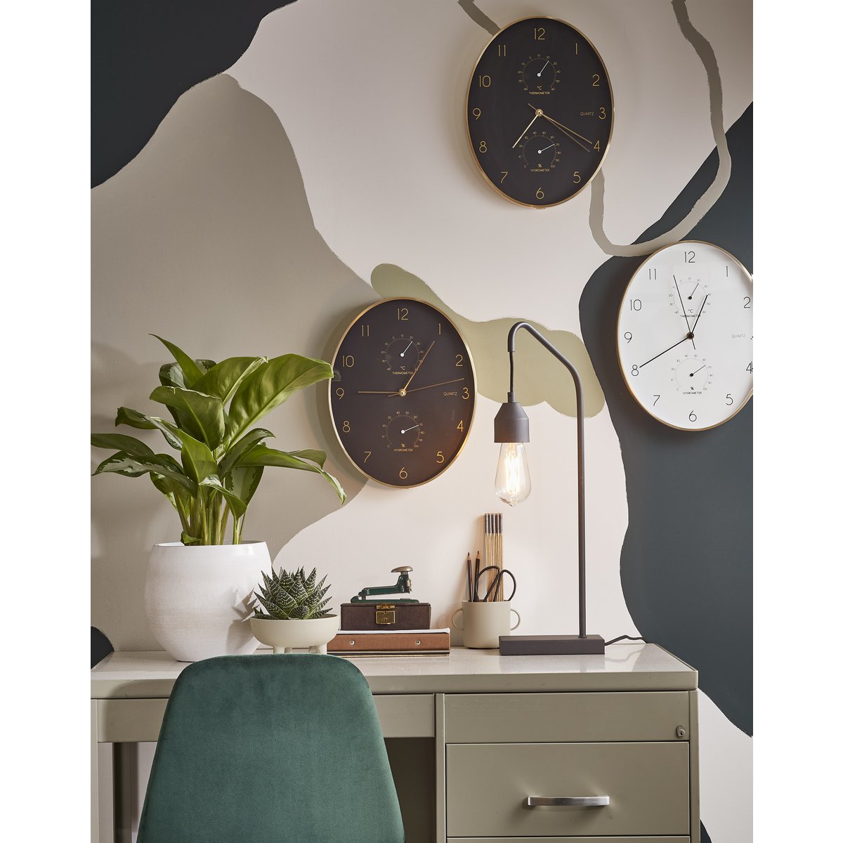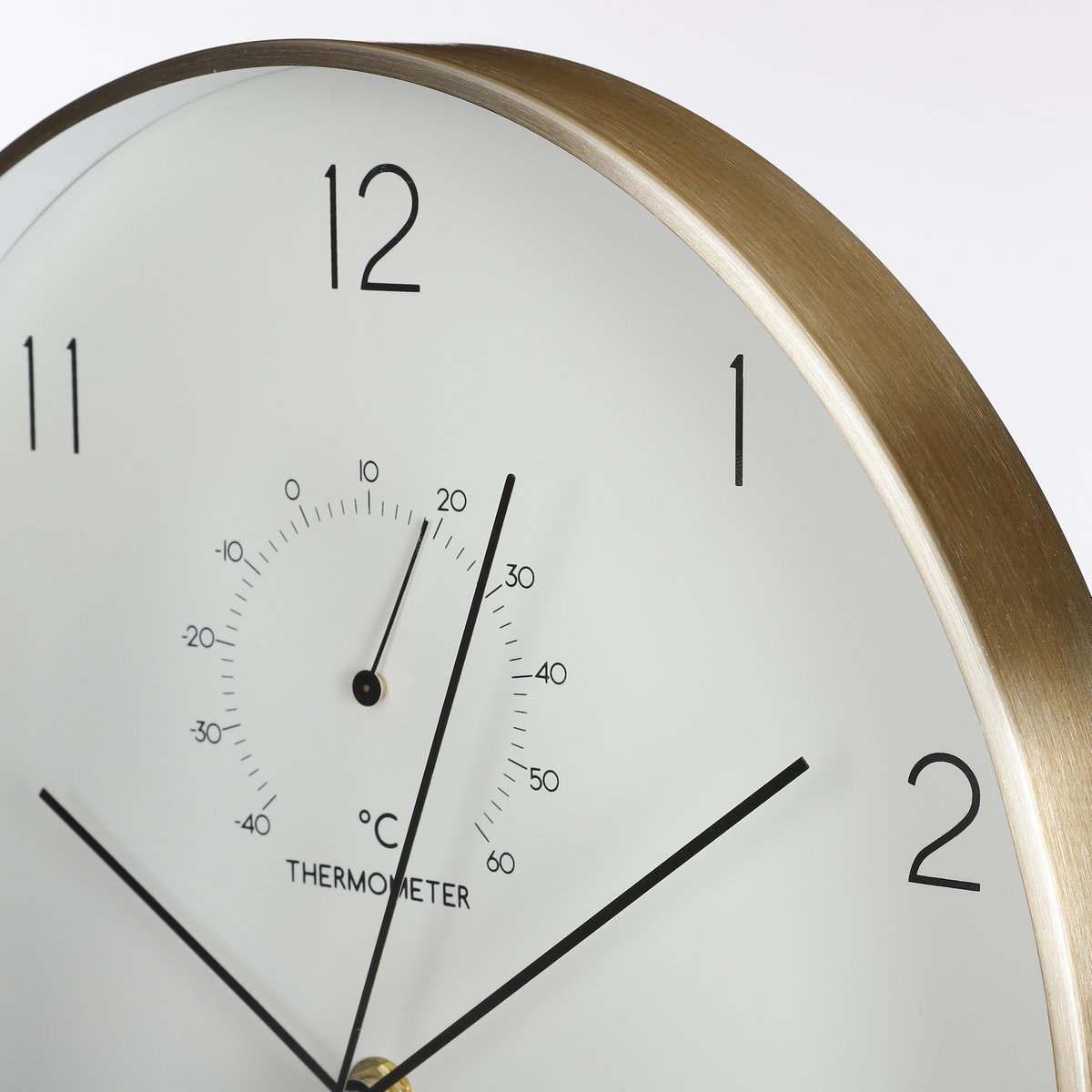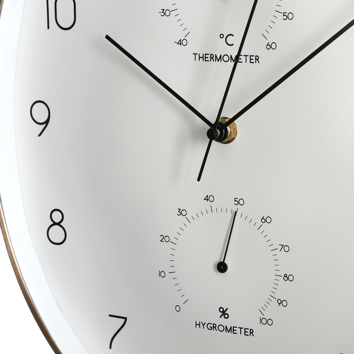 Met de Andy wandklok uit de collectie van Mica Decorations weet je voortaan altijd hoe laat het is. De klok is gemaakt van aluminium en heeft een ovale vorm. De witte achtergrond staat mooi in contrast met de gouden rand en de zwarte wijzers. Simpel, maar toch chic! Door het strakke design past de klok daarnaast in elk interieur. De klok is ook voorzien van een thermo- en hygrometer. De afmetingen zijn L27,5 x B4,5 x H35 cm.