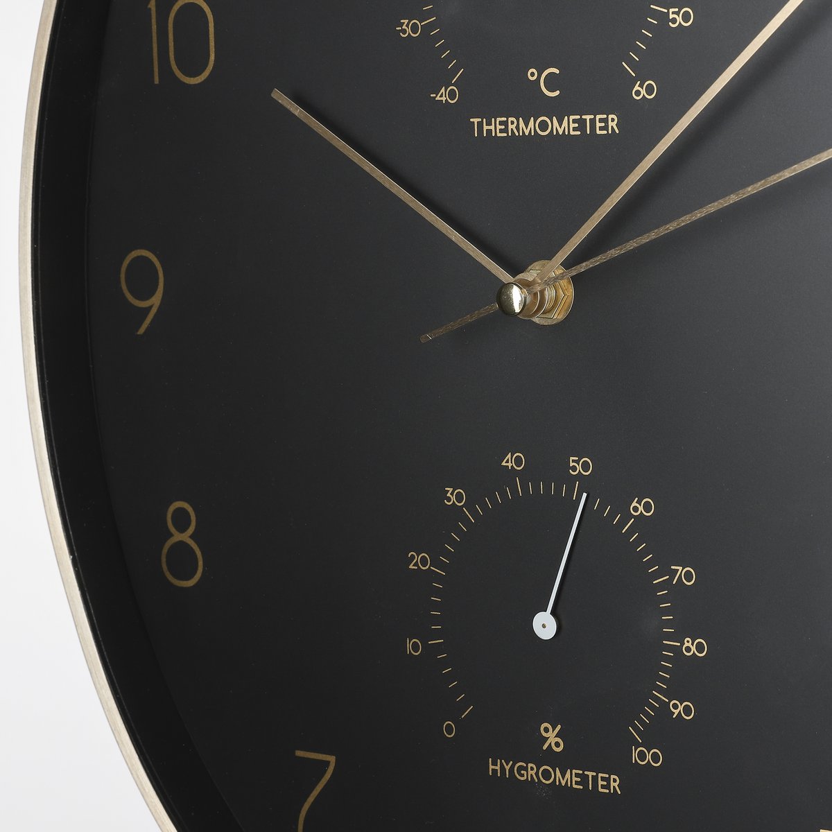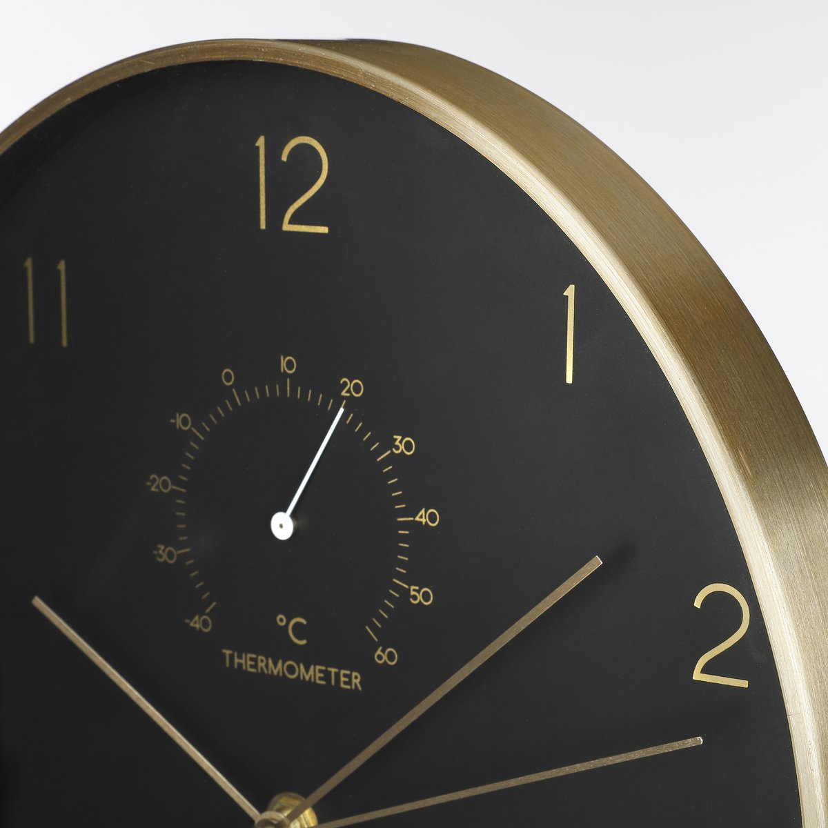 Met de Andy wandklok uit de collectie van Mica Decorations weet je voortaan altijd hoe laat het is. De klok is gemaakt van aluminium en heeft een ovalen vorm. De zwarte achtergrond staat mooi in contrast met de gouden rand en wijzers. Stoer met een chique touch! Door het strakke design past de klok daarnaast in elk interieur. De klok is ook voorzien van een thermo- en hygrometer. De afmetingen zijn L27,5 x B4,5 x H35 cm.