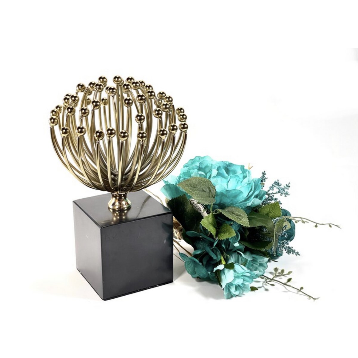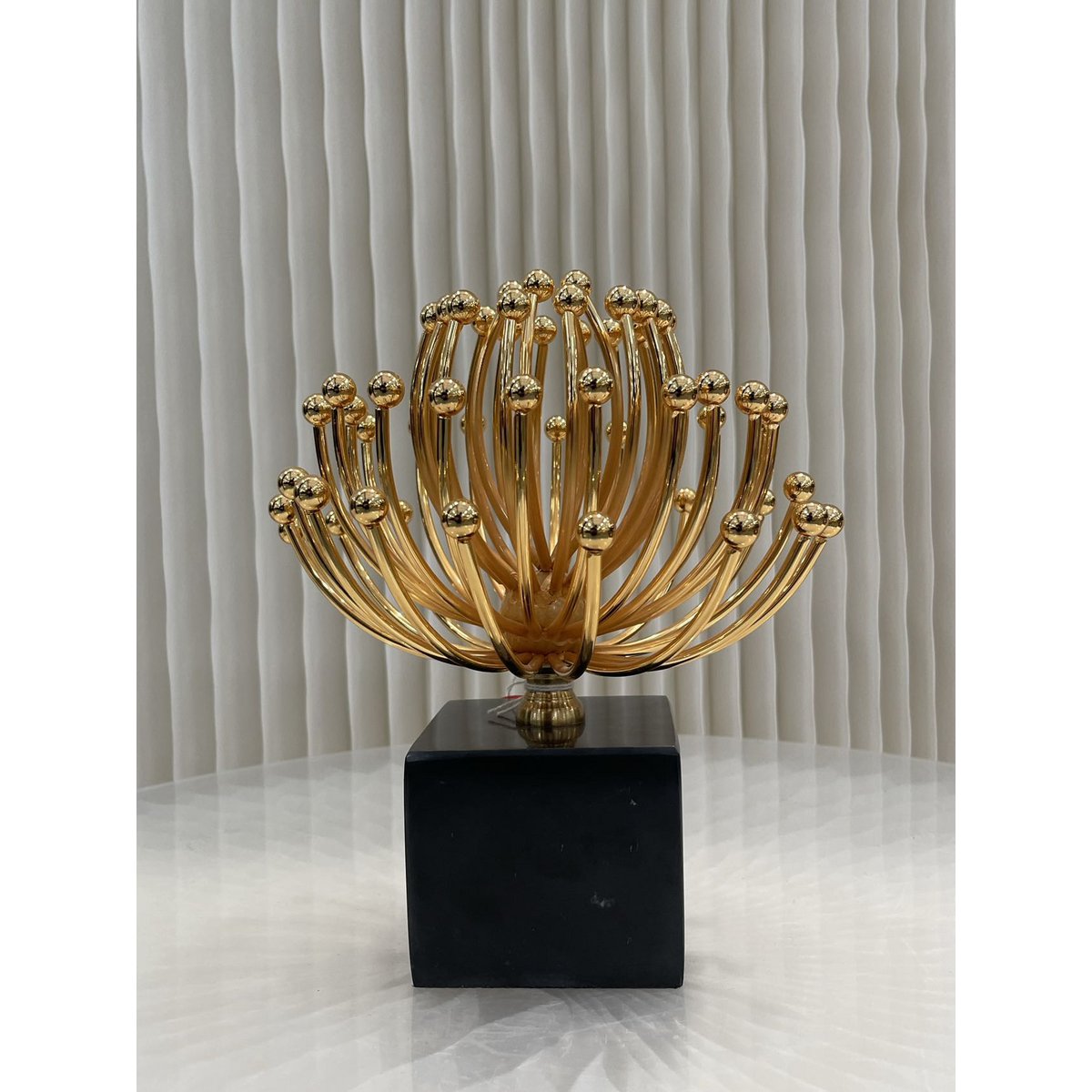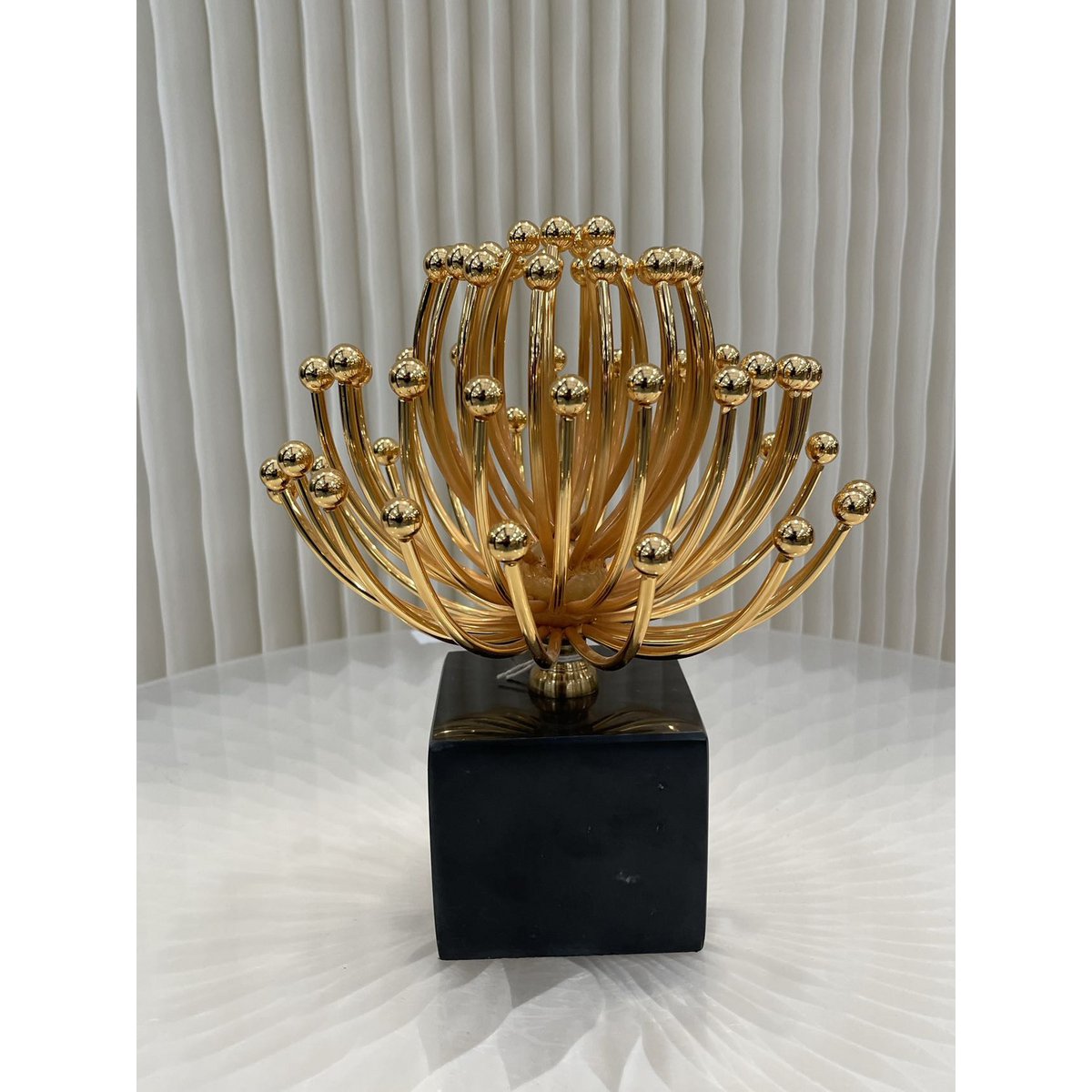 Decoratieve sculptuur van metaal met ivoren voet Hoogte: 26 cm; Breedte: 23 cm. Onderhoud1) Verwijder stof en resten met een zachte doek die is bevochtigd met water;2) Gebruik neutrale zeep of reinigingsmiddel op een zachte doek om te reinigen