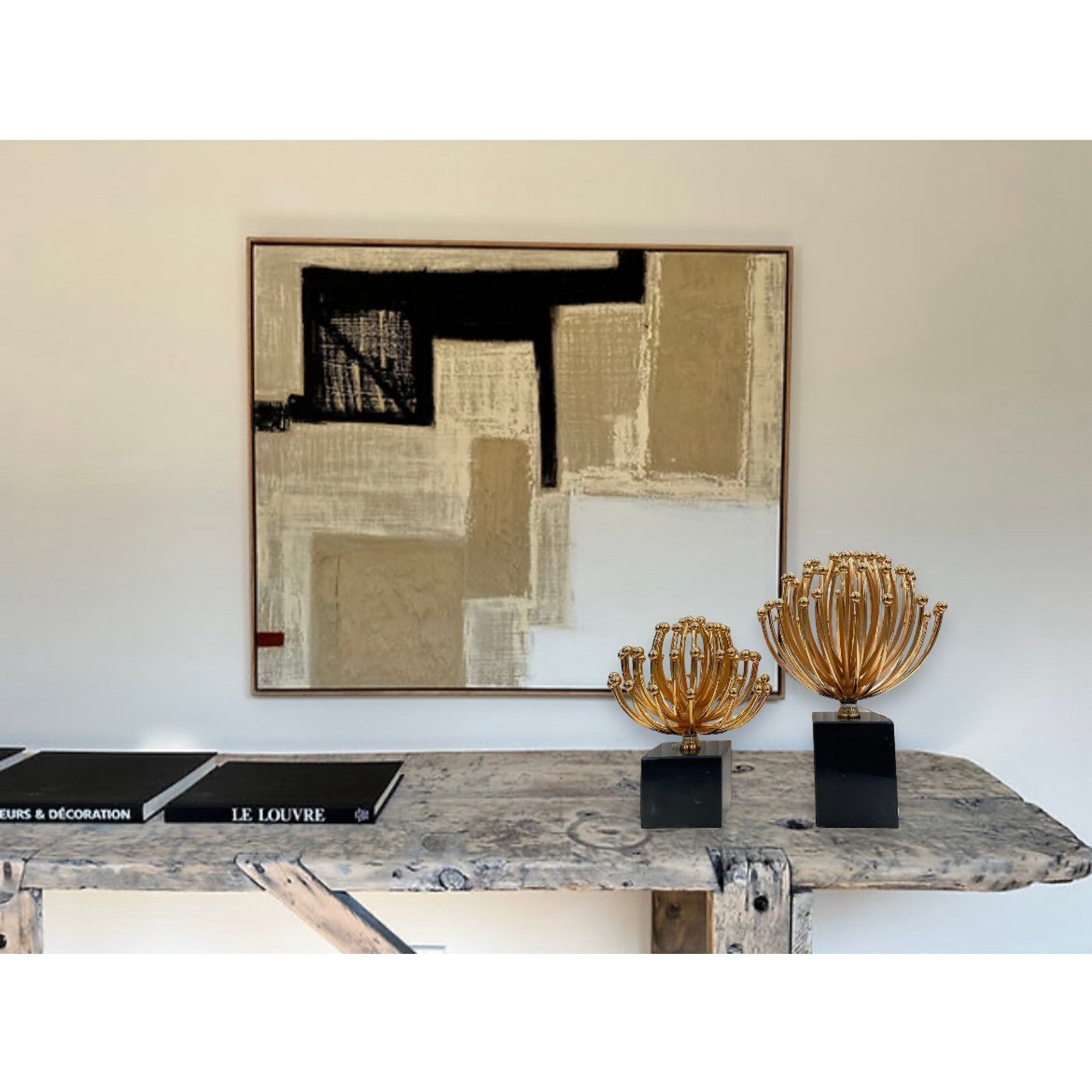 Laat uw omgeving vol persoonlijkheid en betekenis achter! Koop nu de decoratieve sculptuur van metaal met ivoorkleurige voet. Het heeft een prachtig ontwerp dat geweldig is om samen te stellen in uw decoratie, waardoor de omgeving moderner wordt. Voor degenen die waarde hechten aan een klassieke of moderne inrichting, biedt Bonivo een verscheidenheid aan decoratieve objecten die perfect harmonieus in uw omgeving kunnen worden geïntegreerd. Technische specificaties