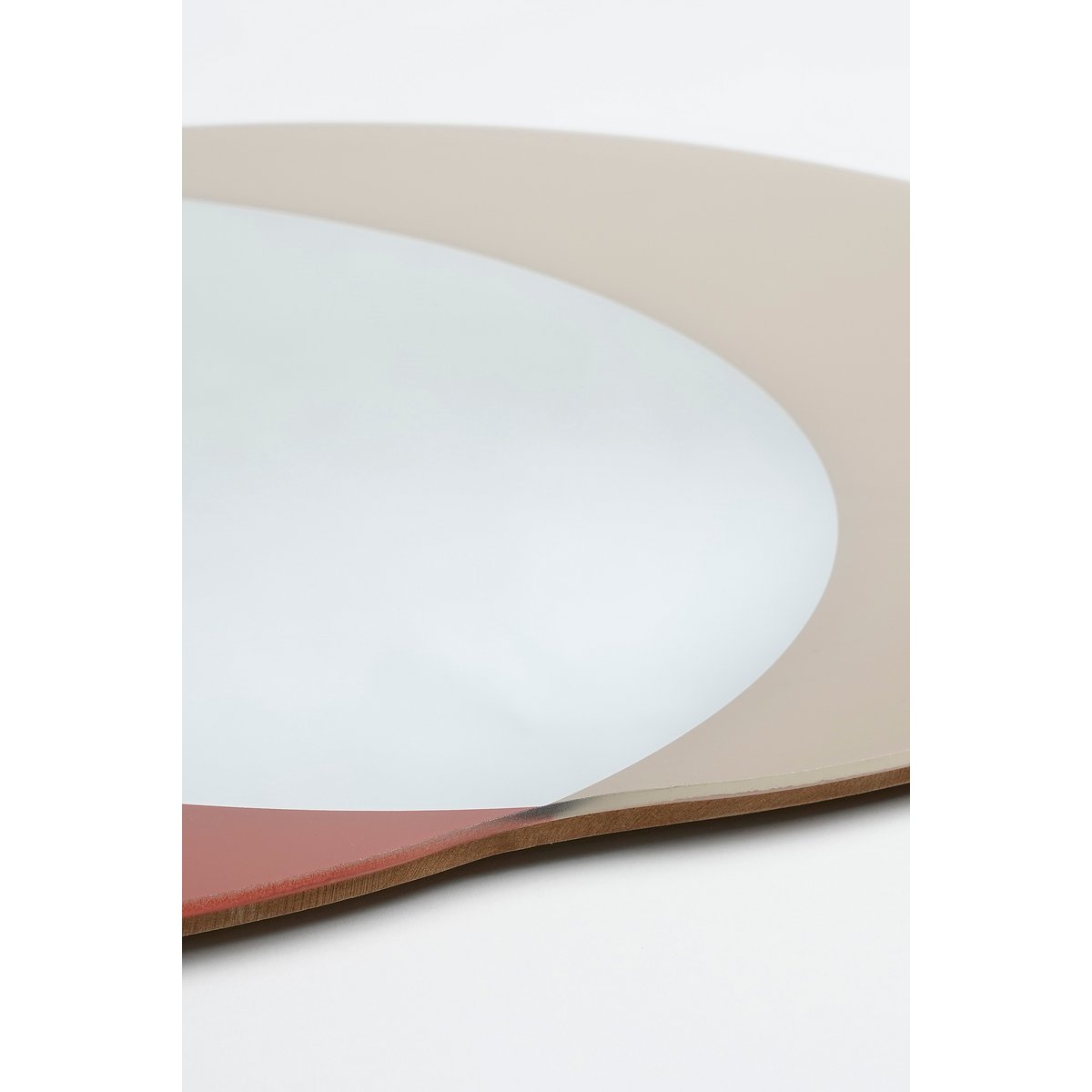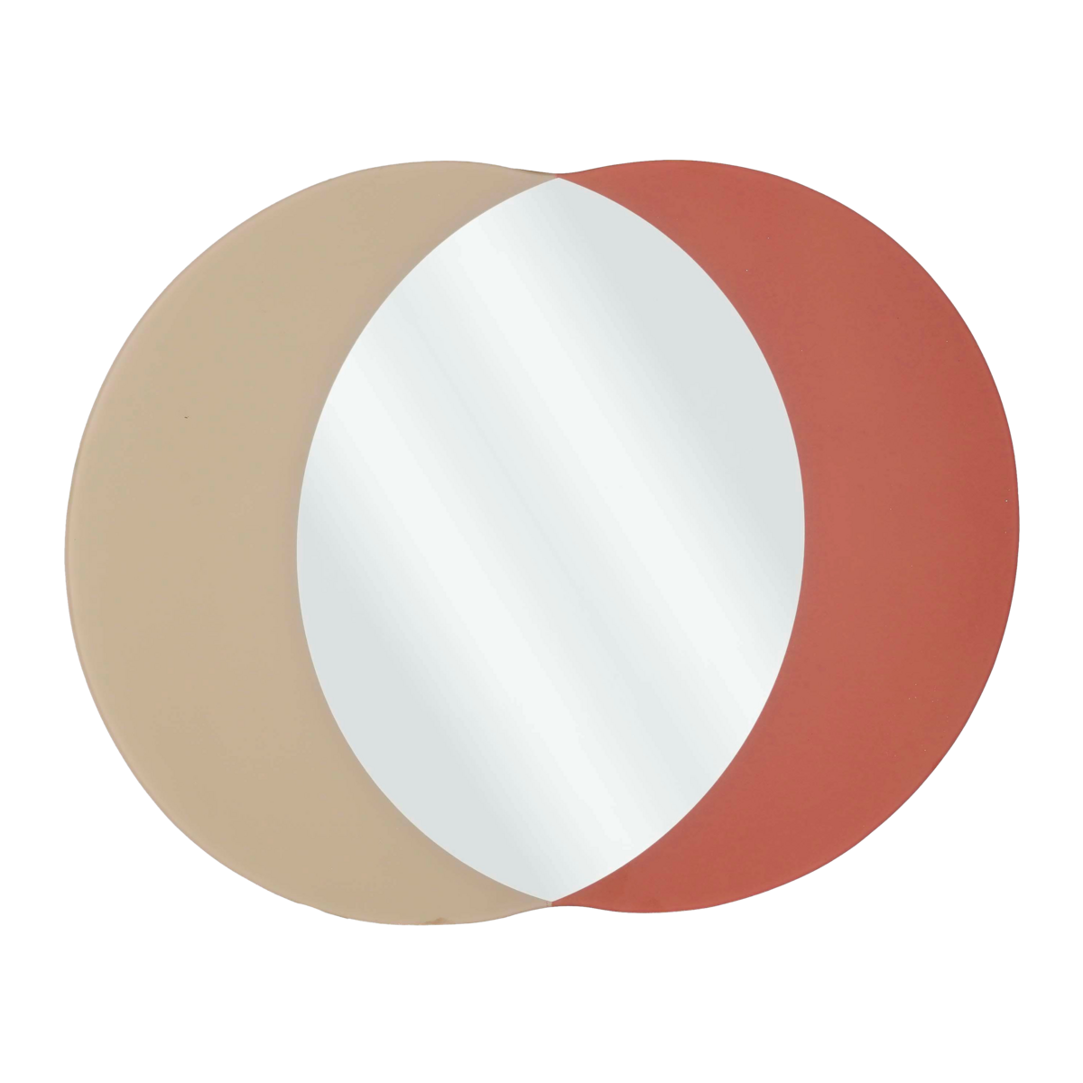 Met zijn abstracte ontwerp is de Avilo wandspiegel van Mica Decorations een echte blikvanger die je muur direct naar een hoger niveau tilt! De moderne spiegel is namelijk voorzien van twee abstracte vormen in een warme, donkerrode en beige kleur. Daarnaast creëer je met deze spiegel gelijk een ruimtelijk effect in bijvoorbeeld een wat kleinere ruimte. Hierdoor is de spiegel naast praktisch ook erg mooi als muurdecoratie. De Avilo spiegels zijn verkrijgbaar in verschillende afmetingen en uitvoeringen. Deze rond vormige spiegel is 58 cm lang en 44,5 cm breed. Perfect voor bijvoorbeeld een hal, slaapkamer of in je woonkamer! Ook leuk om te combineren met meerdere spiegels uit de Avilo collectie van Mica Decorations voor stijlvol geheel!