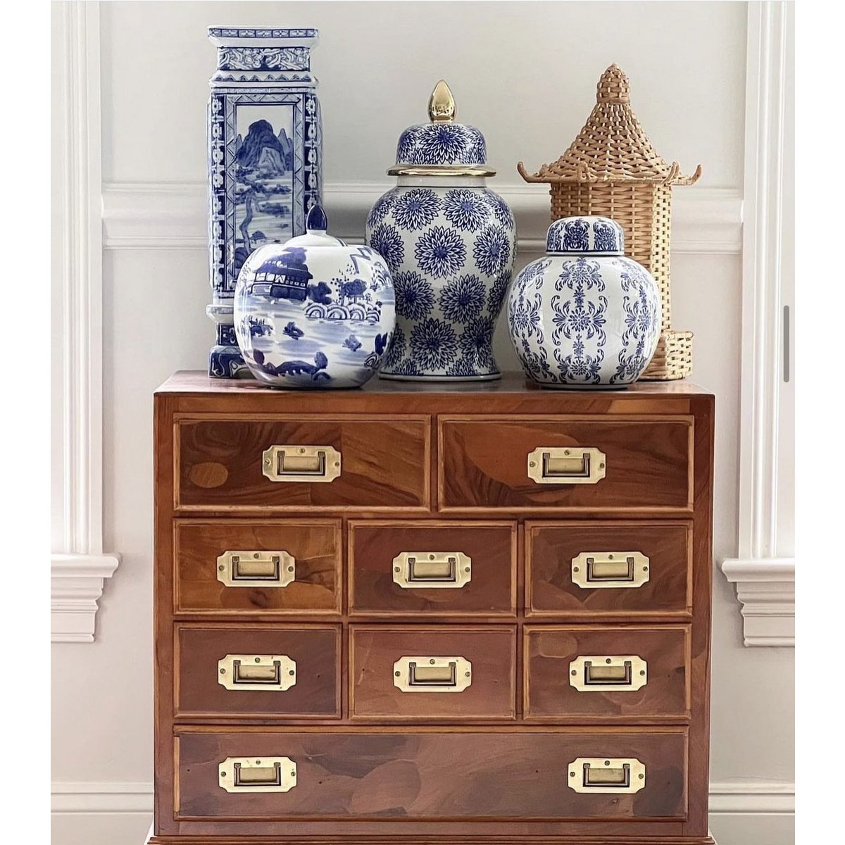BIG size-blauwe en witte porseleinen bloemenvaas (voor keuken thuis)