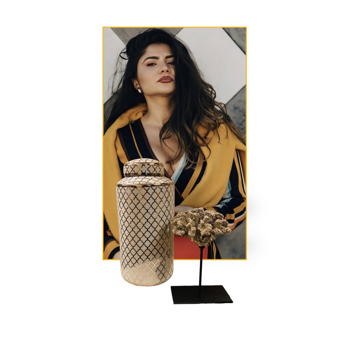 Deze grote, op abstracte kunst geïnspireerde container is een mooie aanvulling op stijlvolle opbergoplossingen. Eigentijdse zilverkleurige accenten maken deze keramische charmeur ideaal voor een door en door moderne woonkamer of familiekamer.