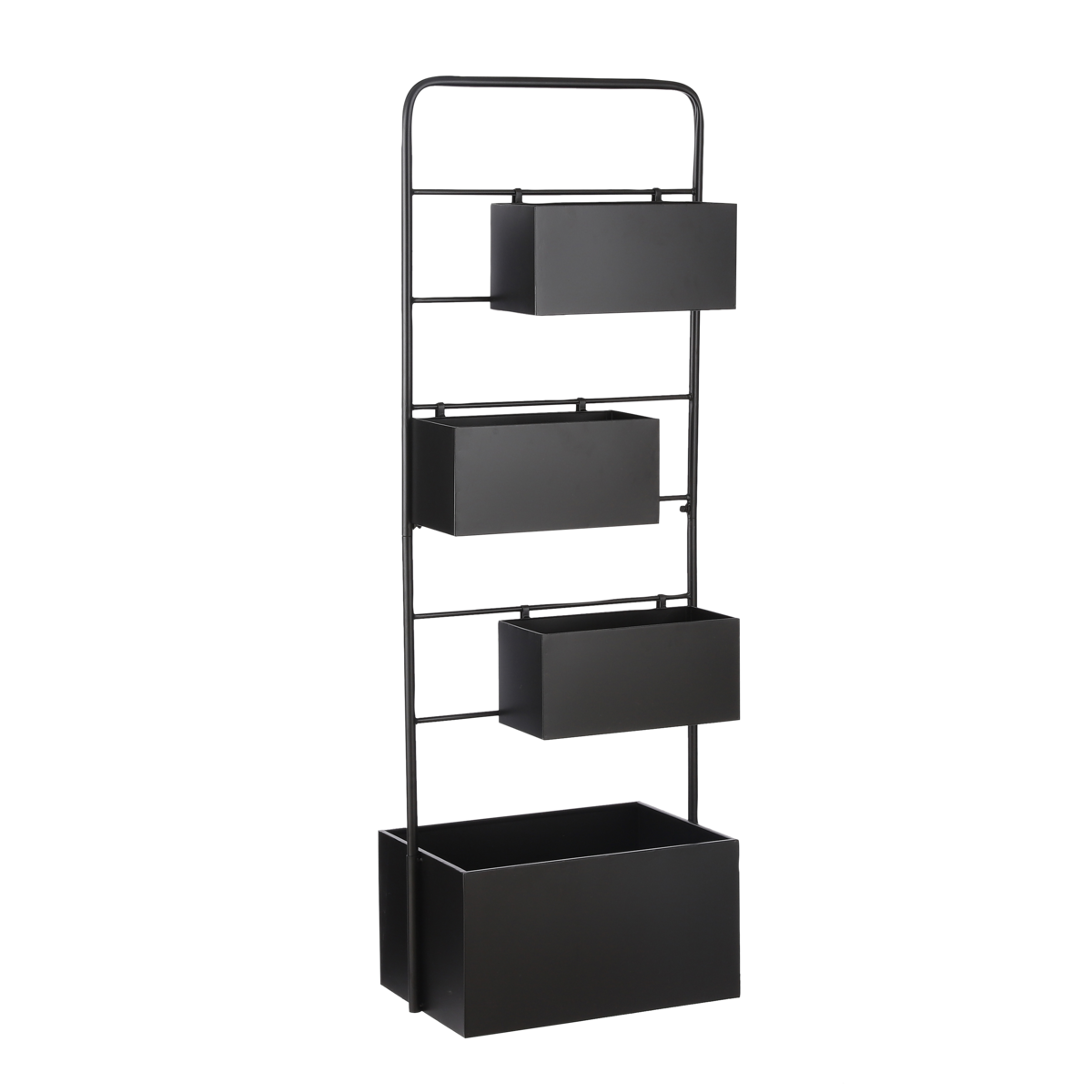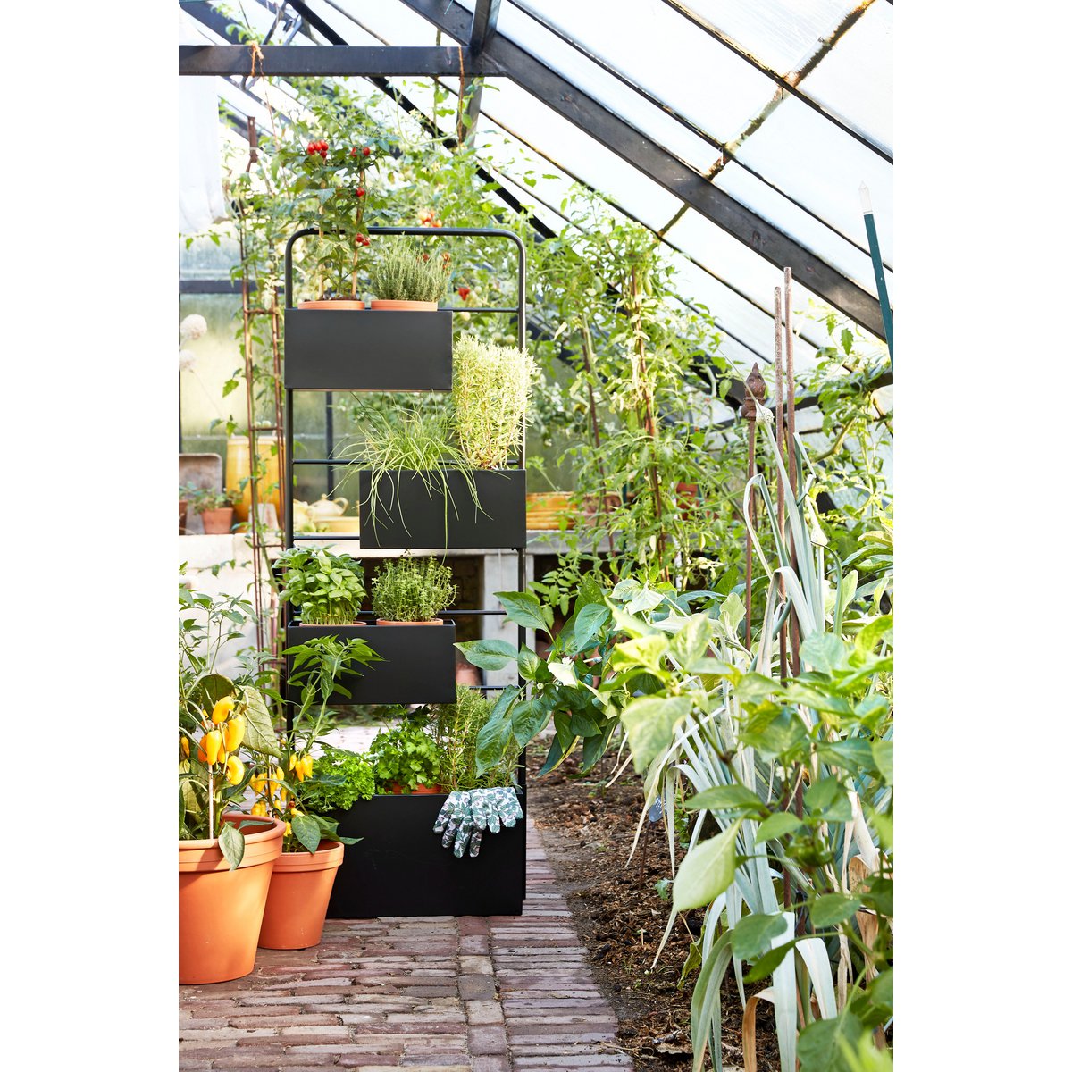 Dit Dani plantenrek van Mica Decorations is perfect om meerdere planten in te zetten. Het moderne plantenrek is gemaakt van zwart metaal. Het rek is voorzien van drie zwarte plantenbakken die je eenvoudig kunt verplaatsen, onderin zit nog een grote plantenbak. Met dit rek creëer je eenvoudig een sfeervolle hoek met planten. Het is ook een ideaal rek voor kruidenplantjes! Het plantenrek voor buiten is 37 cm lang, 38 cm breed en 160 cm hoog. Waar zet jij deze neer?