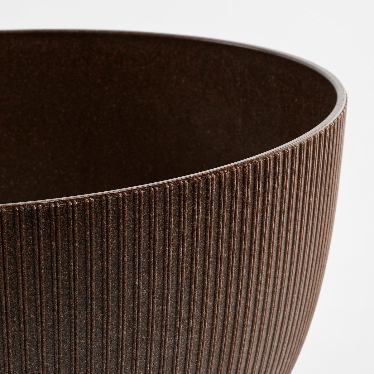 Geef jouw favoriete plant een prominente plek met deze Doppio schaal op poten van Mica Decorations. De donkerbruine pot bestaat voor 40% uit een mix van koffieschillen van restafval met gerecycled FSC®-gecertificeerd hout en voor 60% uit polypropyleen. De drie bruine pootjes zijn voor 40% gemaakt van gerecycled FSC®-gecertificeerd hout en 60% polypropyleen. De bloempot is daarnaast lichtgewicht, UV- en vorstbestendig. Door de uitneembare plug ontstaat er een drainagegat waardoor de pot een goede afwatering heeft. De pot is hierdoor geschikt voor zowel binnen als buiten. Erg mooi in combinatie met een kleurrijke plant. De Doppio bloempotten zijn verkrijgbaar in verschillende afmetingen en kleuren. Deze donkerbruine bloempot heeft een afmeting van H22 x Ø47 cm.