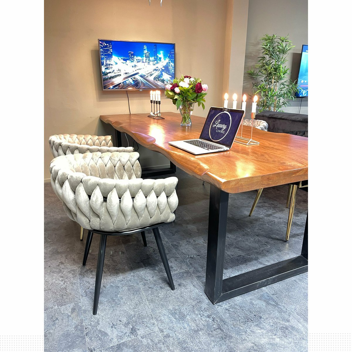 Deze prachtige Eva Chair Velvet Black Gold Frame heeft een prachtig velvet weefpatroon in de omringende rugleuning van de stoel. Deze velvet stoel is een moderne luxueuze eyecatcher in uw interieur, een opvallende verschijning met een uniek design. De zachte zitkussen en de comfortabele rugleuning zorgen voor de perfecte zitpositie voor lange avonden aan tafel. De Eva Chair Velvet Black Gold Frame is verkrijgbaar in vier prachtige kleuren: Zwart met gouden poten, Zandwit met gouden poten, Zandwit met zwarte poten, Grijs met zilveren poten. Lengte 75 cm Breedte 65 cm Hoogte 51 cm