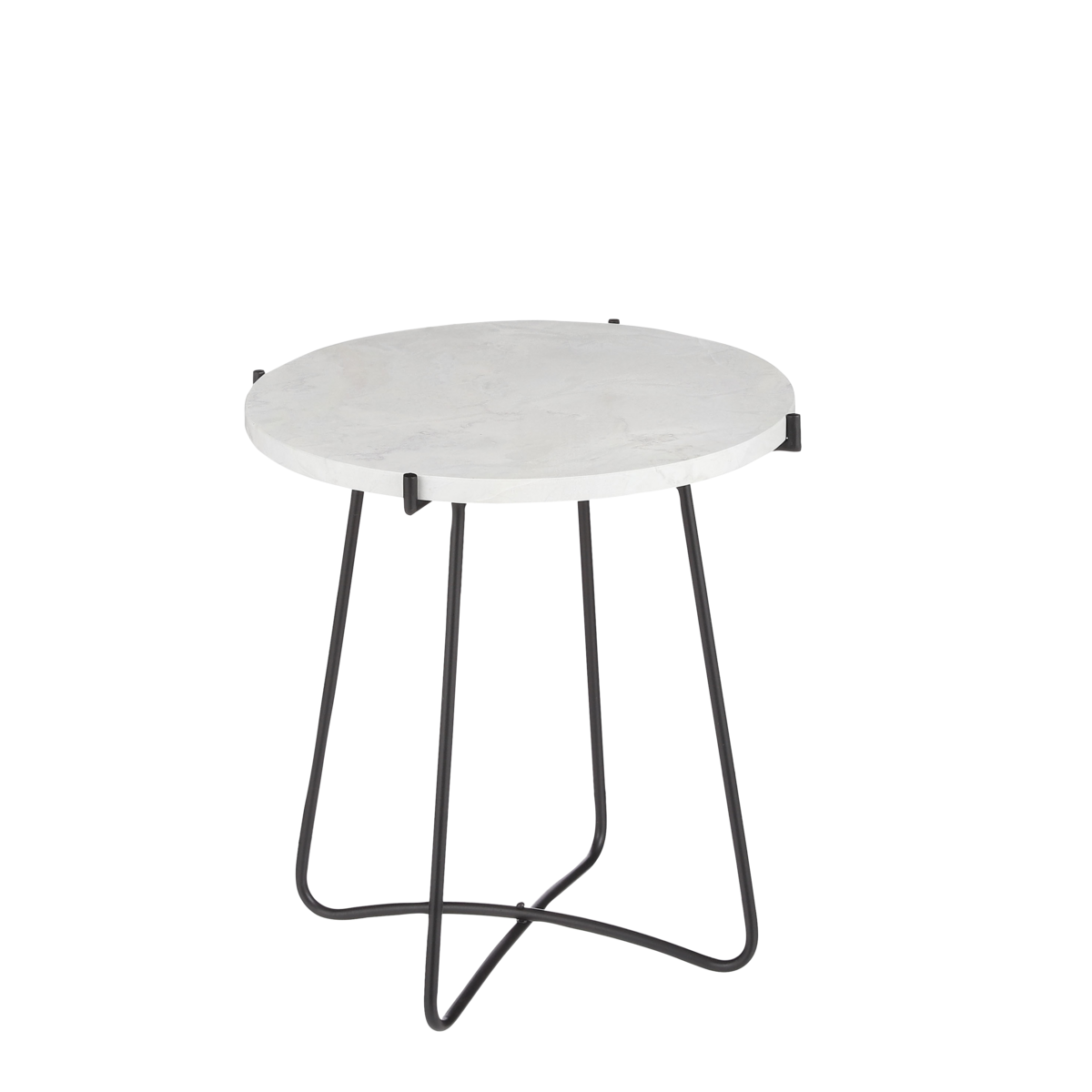 Voor dit moderne Farah bijzettafeltje van het merk Mica Decorations is in elk huis wel een plekje te vinden. Het ronde blad heeft een stijlvolle witte marmerlook. Het zwarte onderstel van metaal geeft de bijzettafel een moderne uitstraling. Zet hem naast de stoel of bank voor je drankje, in de hoek met wat leuke decoraties of combineer hem met andere tafeltjes. Wat je er ook mee doet, dit tafeltje trekt altijd de aandacht! De afmetingen zijn H45 x Ø43 cm.