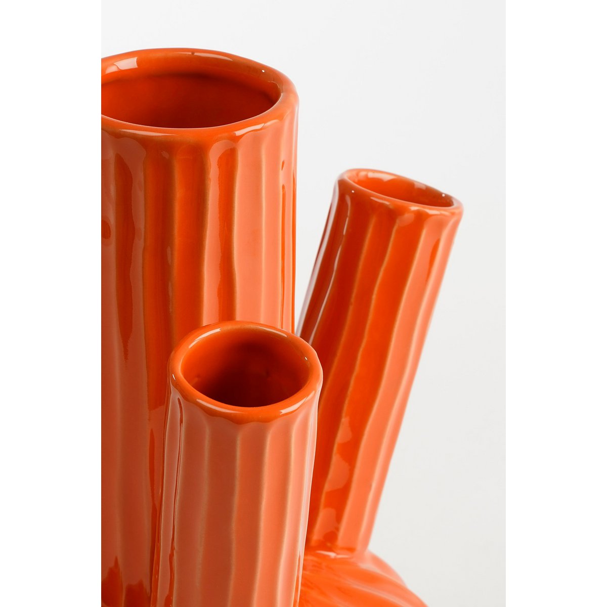 Deze Felipe tulpenvaas van Mica Decorations mag niet ontbreken wanneer tulpen je favoriet zijn. De tulpenvaas is gemaakt van stevig keramiek en heeft een vrolijke oranje kleur. Daarnaast is de vaas uniek omdat deze 100% handgemaakt is. Dankzij de vormgeving en de verschillende tuitjes is deze vaas ideaal om tulpen of snijbloemen in te schikken. Prachtig om neer te zetten op tafel of op je dressoir voor een sfeervol geheel. Zelfs zonder tulpen is deze vaas een echte eyecatcher! De vaas voor tulpen is 27 cm hoog en heeft een diameter van 20 cm. |Let op: Omdat dit een handgemaakt product is, kan de kleur, maat of vorm bij ieder item iets afwijken. Daarnaast zijn keramieken vazen poreus en nooit 100% waterdicht.