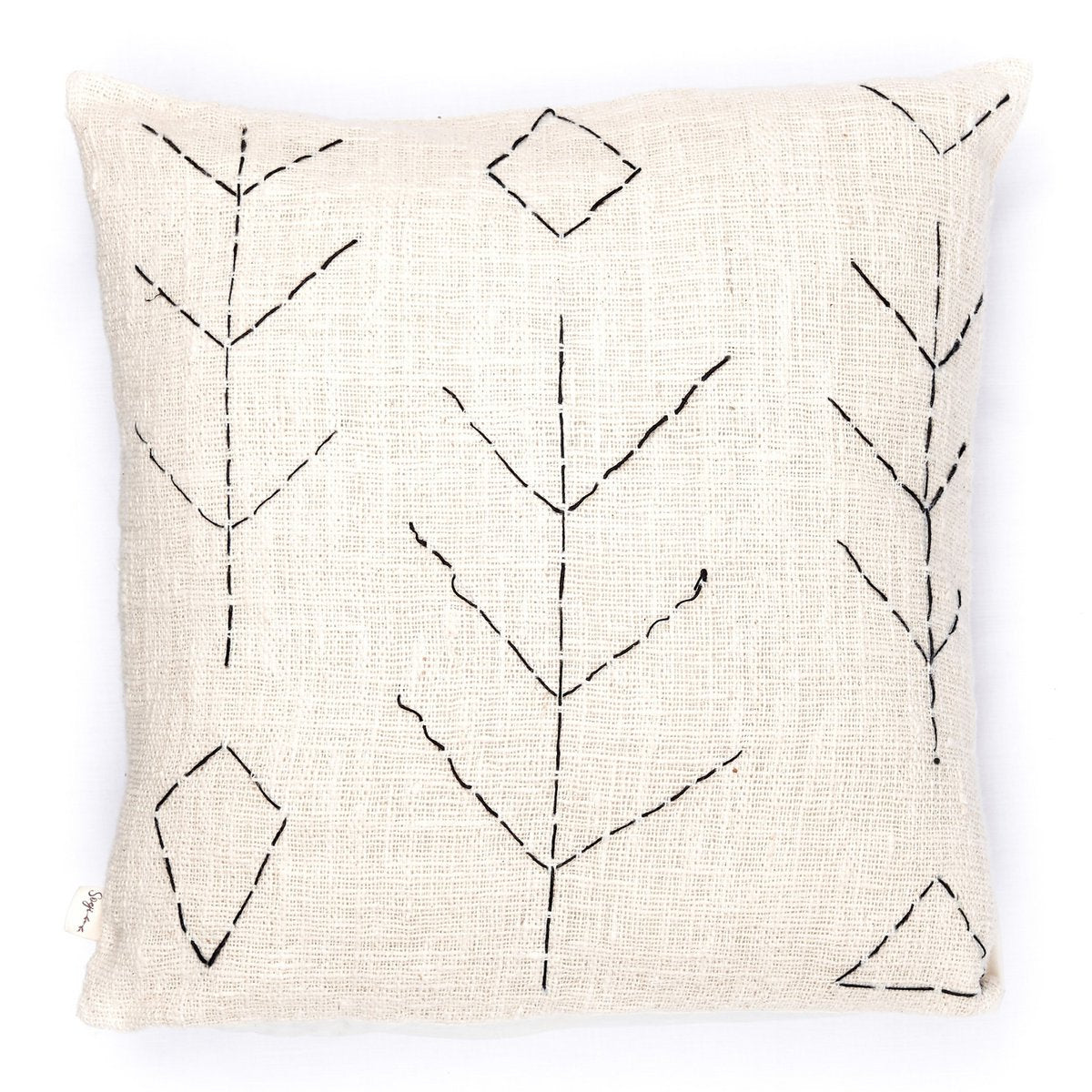Fijne zwarte accenten in de vorm van diamanten en takjes zijn liefdevol geborduurd en geven deze hoes een subtiele uitstraling die gemakkelijk te combineren is met andere kussens en dekens uit ons assortiment. Er zijn geen grenzen aan uw creativiteit!