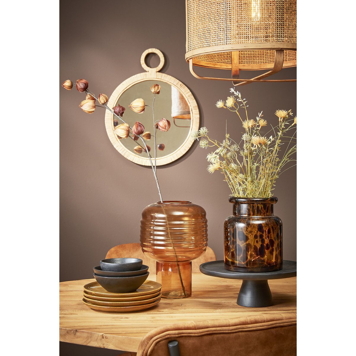 De Kaj wandspiegel uit de collectie van Mica Decorations is praktisch en tegelijkertijd bijzondere decoratie voor aan je muur. De rotan spiegel heeft een ronde vorm en kan gemakkelijk opgehangen worden aan het hengsel. Hang er meerdere op verschillende hoogtes bij elkaar voor een speels effect.