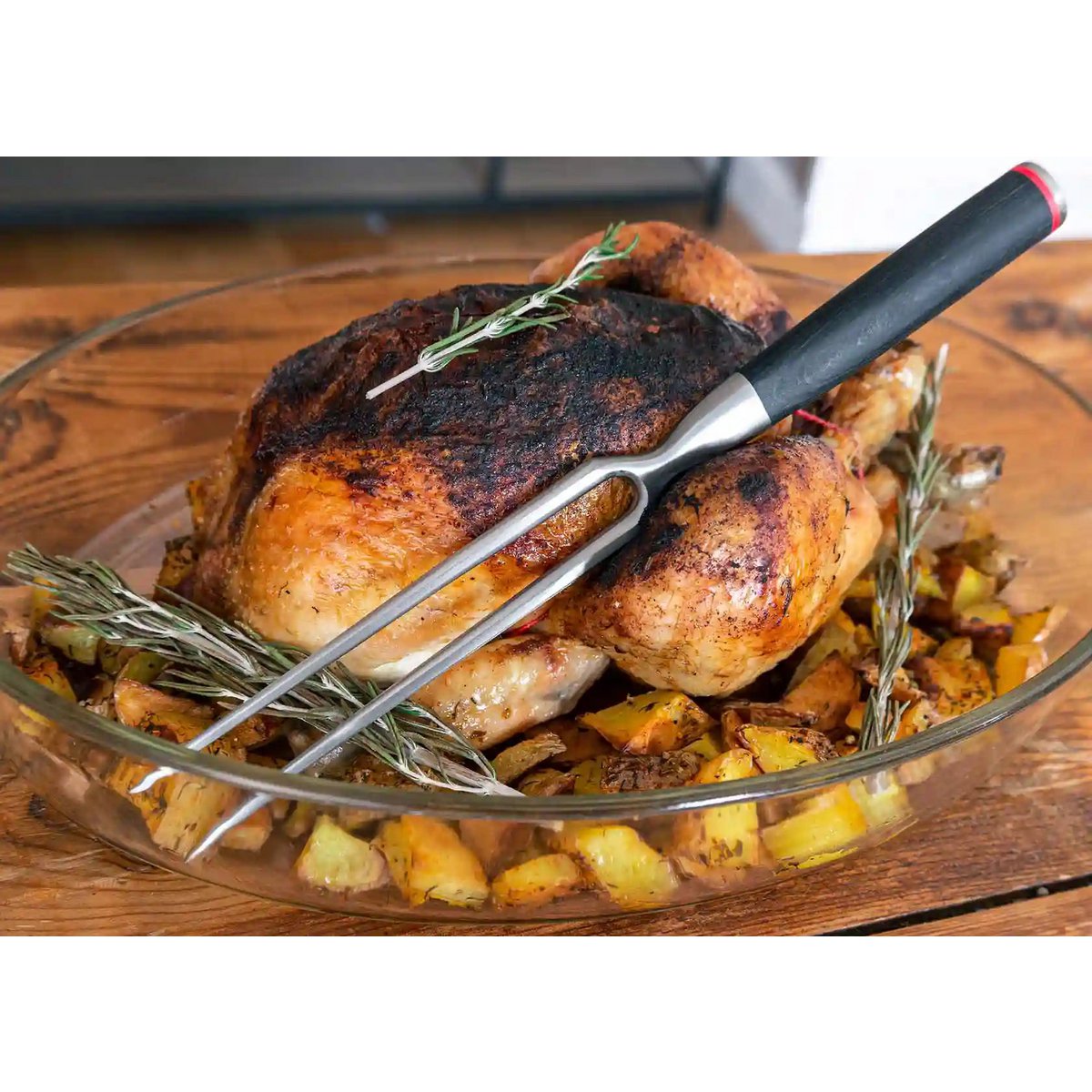 Deze roestvrijstalen vleesvork is het perfecte hulpmiddel om braadstukken of Thanksgiving-kalkoenen te serveren.