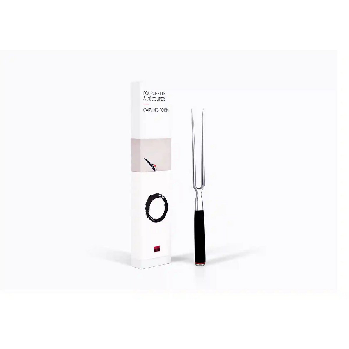 De lengte van de vork, die dient als een verlengstuk van de arm van de carver, zorgt er ook voor dat uw hand veilig uit de buurt van het blad blijft.