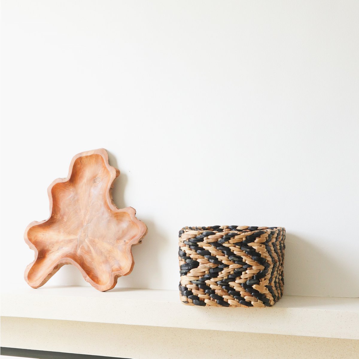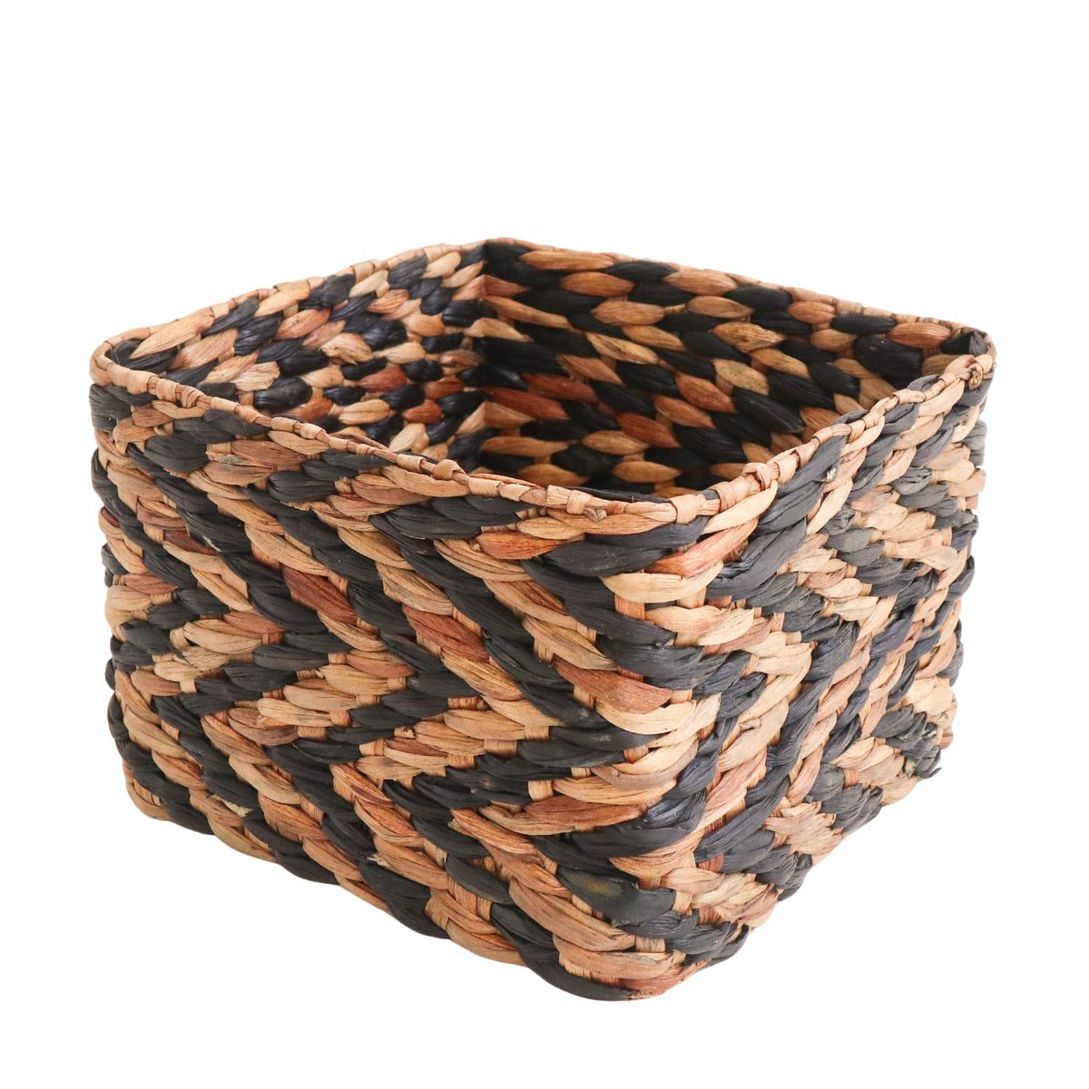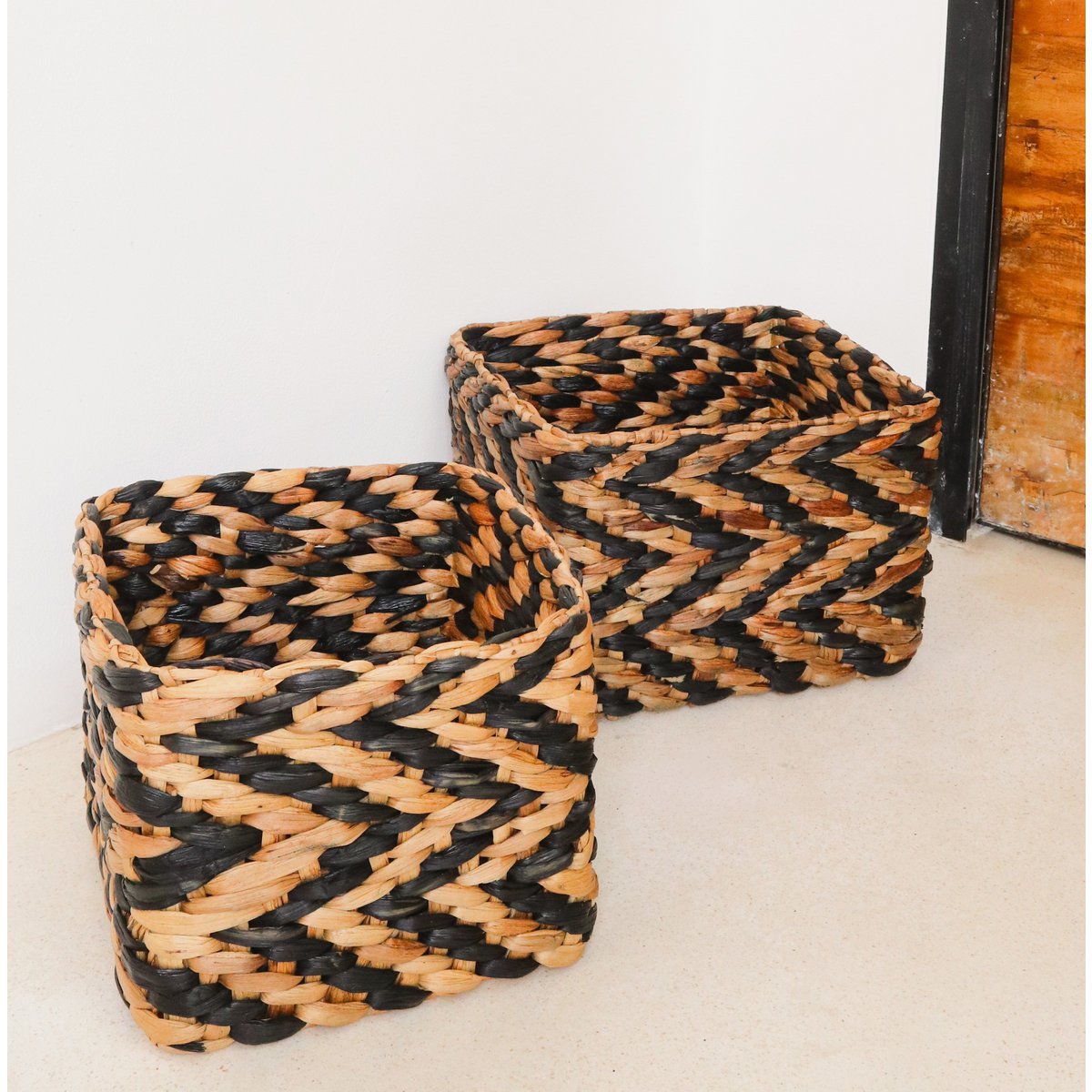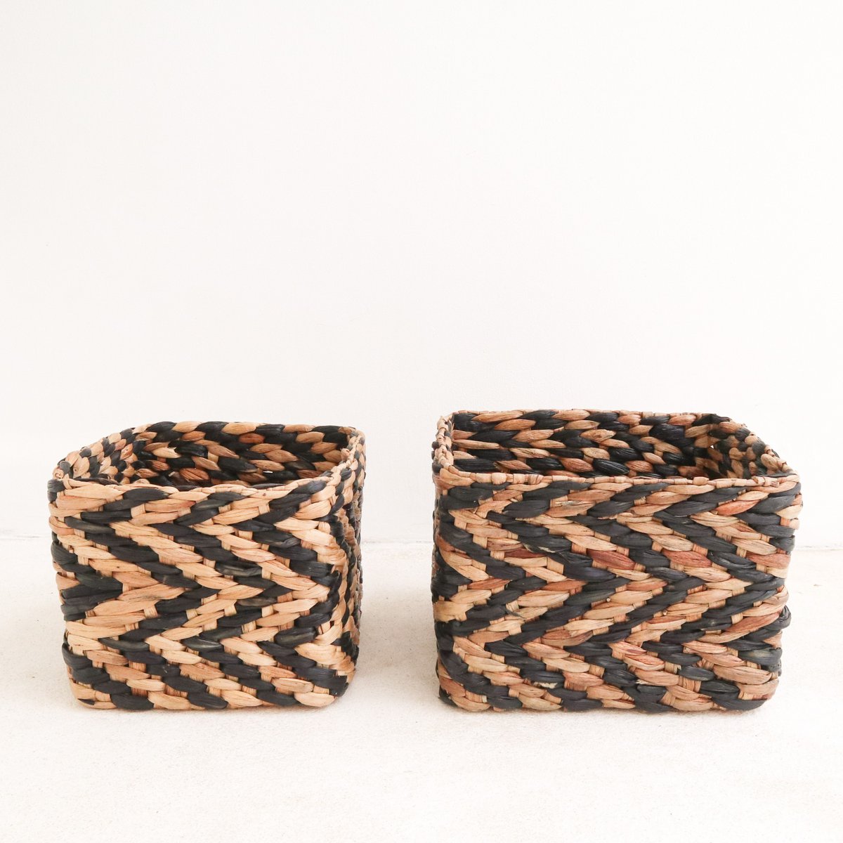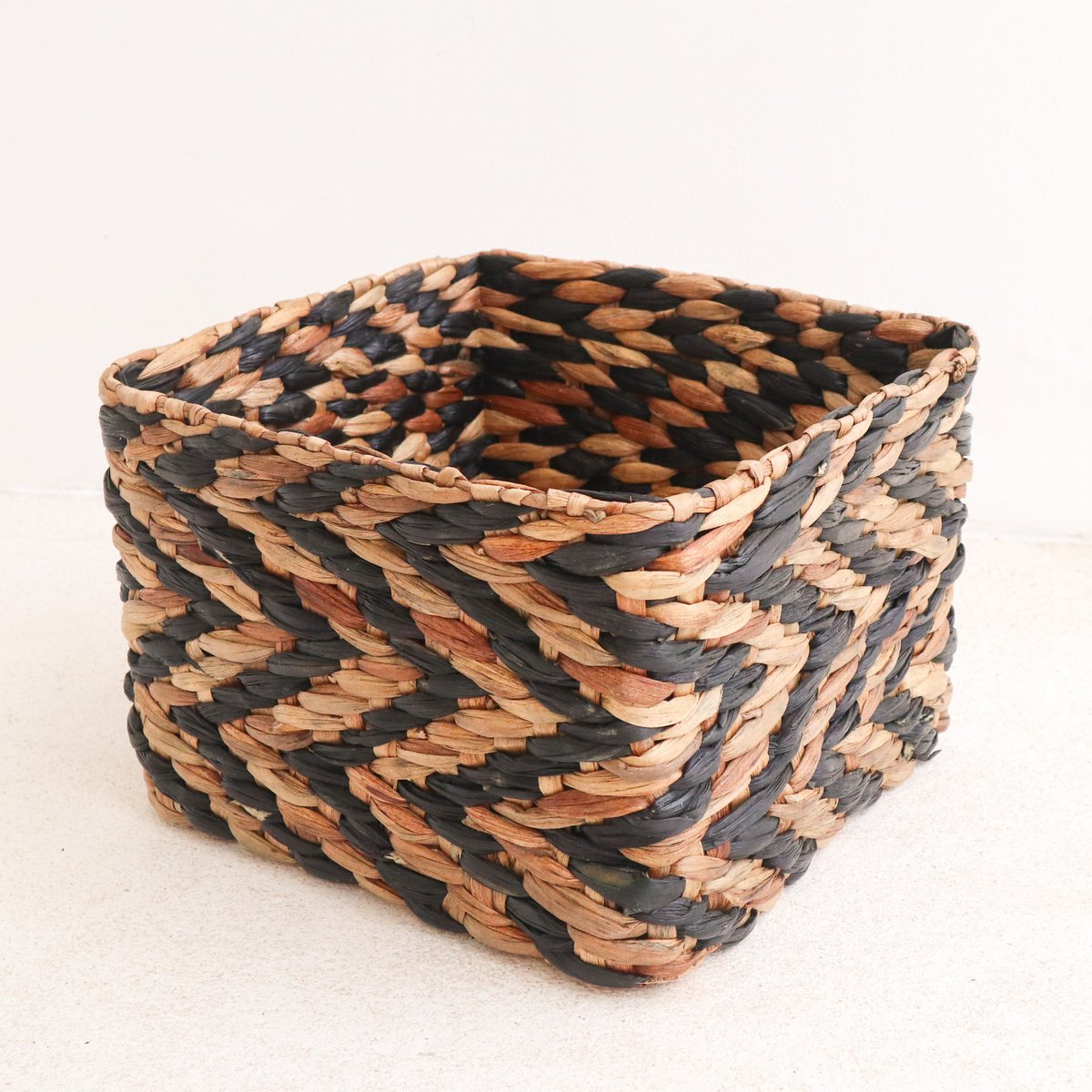 Ontdek onze Caima opbergmand - een praktisch juweeltje met een betoverend zigzagpatroon dat wij in twee maten voor u in ons assortiment hebben opgenomen. Voor deze mand zijn natuurlijke en geverfde zwarte waterhyacintvezels kunstig met elkaar geweven, waardoor de decoratieve vierkante mand meteen in het oog springt.