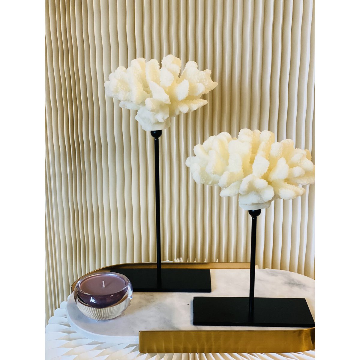 Koraalcollectie met metalen standaard - maat: H25cm B15cm D15cm