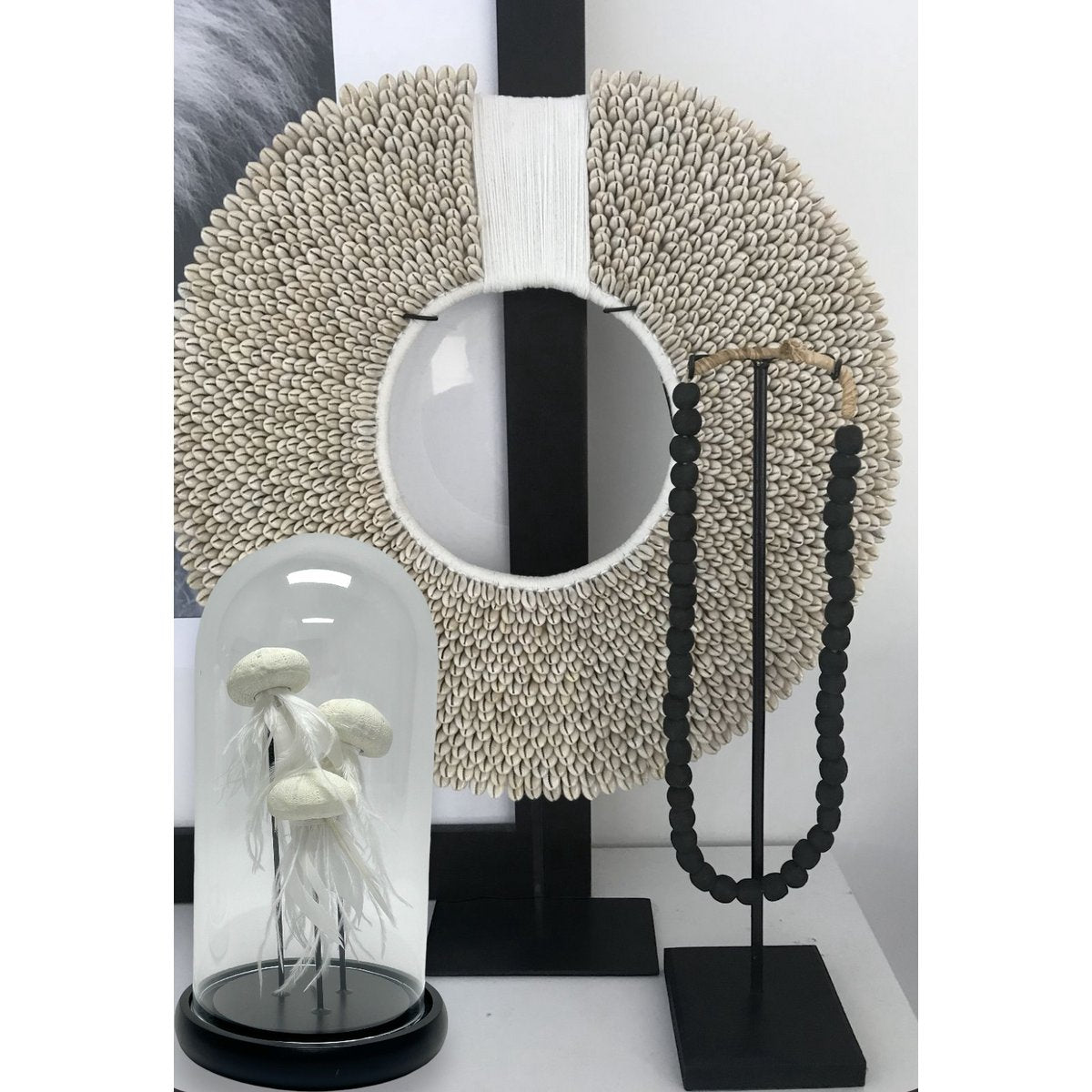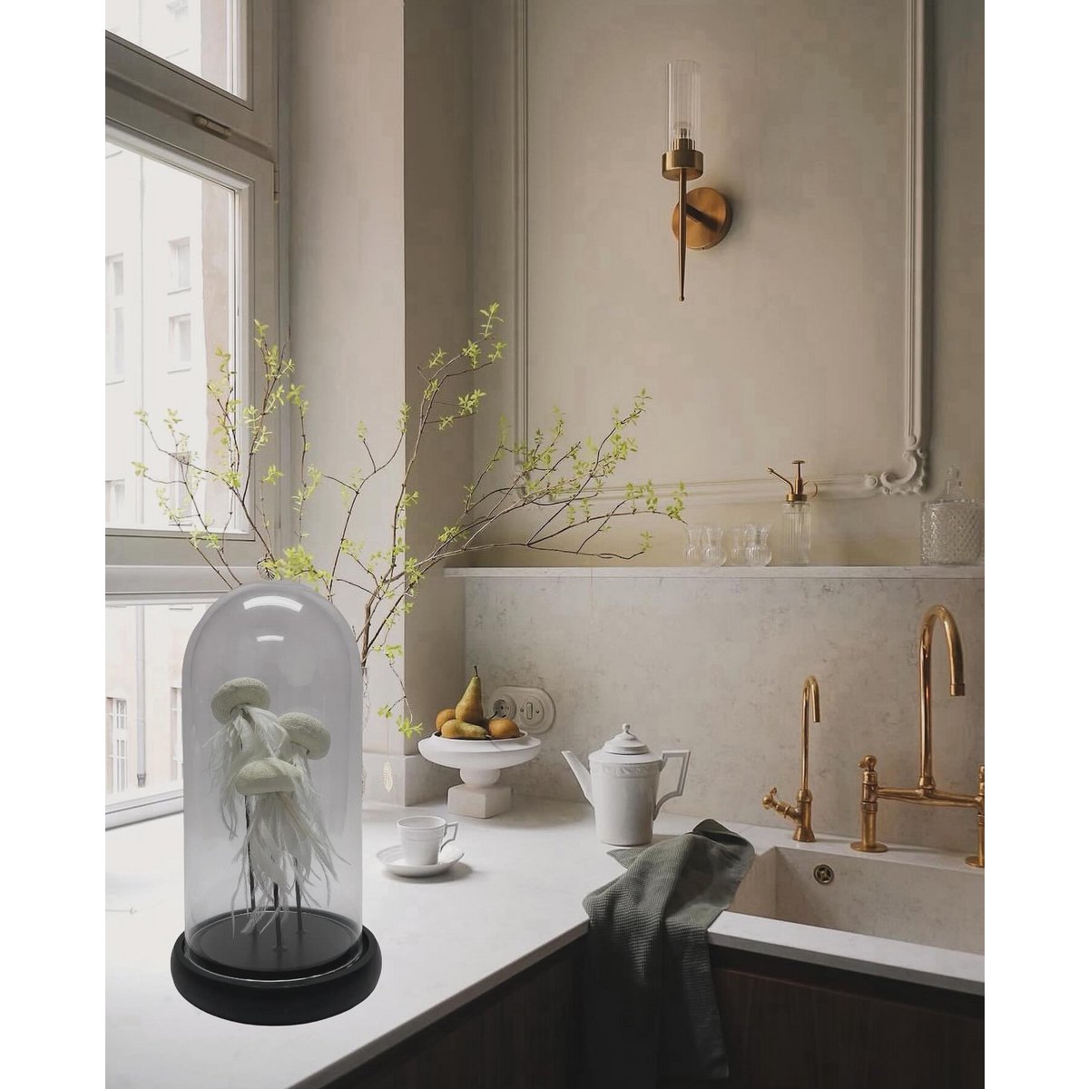 Ontdek de betoverende elegantie van onze nieuwste woondecoratie: de Zwarte Houten Voetstuk met Transparante Glazen Stolp, met drie levensechte witte kwallen, vervaardigd uit fijne veren. De zwart-witte kleurstelling sluit perfect aan bij de hedendaagse interieurtrends en past moeiteloos binnen diverse woonstijlen. Dit kunstzinnige stuk brengt een stijlvolle en moderne touch in elk huis, terwijl het ook een tijdloze schoonheid uitstraalt. Ideaal voor diegenen die hun leefruimte willen verrijken met een stukje natuurlijke grandeur zonder de zorg en onderhoud van echte zeedieren.
