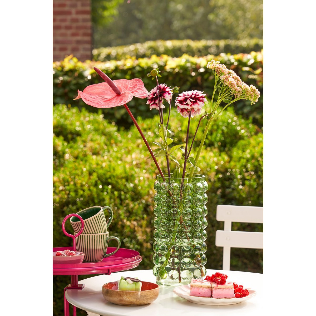 Deze Lausanne vaas uit de collectie van Mica Decorations zorgt voor een stijlvolle toevoeging in je interieur. De glazen vaas heeft een groene kleur en wordt gekenmerkt door de gebobbelde structuur. In combinatie met een mooi boeket bloemen, maak je een ware eyecatcher in elke ruimte. Ook een paar roze bloemen of droogbloemen staan prachtig in deze vaas! Dit model heeft een hoogte van 25 cm en een diameter van 12 cm.