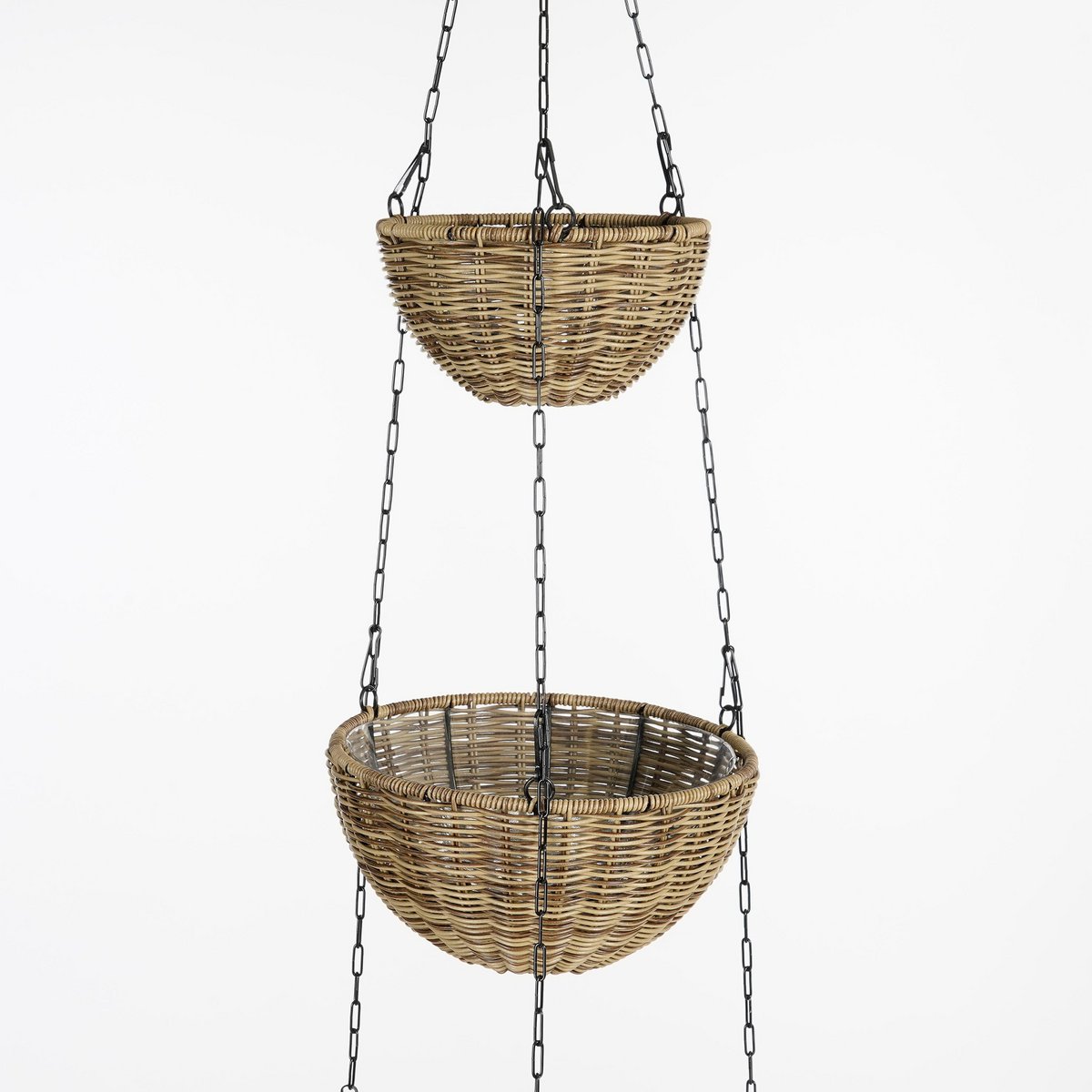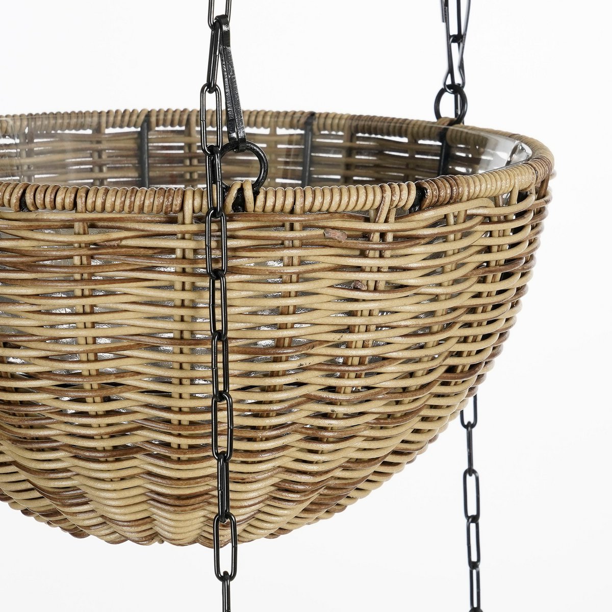 De Luso plantenmand van Mica Decorations is ideaal voor in je tuin, terras of balkon. De drie hangmanden zijn gemaakt van kunstof en hebben een prachtige rotan-look. De manden hebben een inhoud van 4, 2,4 en 1,1 liter. Aan de binnenkant zijn de manden voorzien van een plastic liner waardoor je er gemakkelijk verschillende planten in kan poten. De mand hang je eenvoudig op aan de ring en is 110 cm hoog en heeft een diameter van 30 cm. Ook stijlvol om te combineren met meerdere manden uit de Luso collectie van Mica Decorations.
