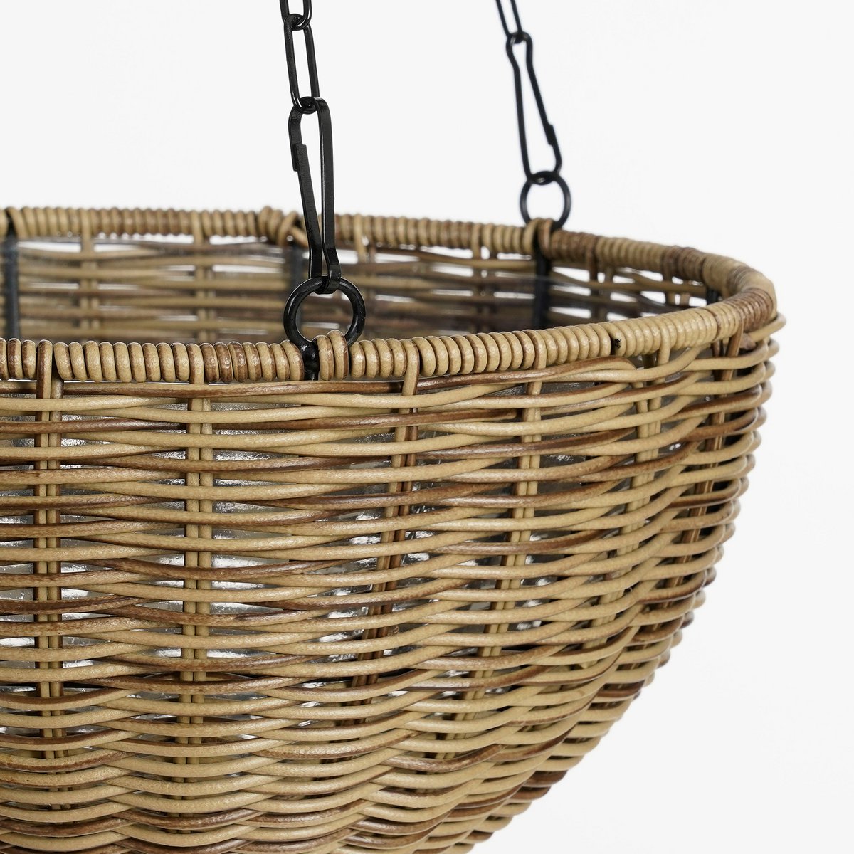 De Luso plantenmand van Mica Decorations is ideaal voor in je tuin, terras of balkon. De hangmand is gemaakt van kunstof en heeft een prachtige rotan-look. Aan de binnenkant is de mand voorzien van een plastic liner waardoor je er gemakkelijk een plant in kan poten. Het voordeel is dat de mand UV- en vorstbestendig is. De mand hang je eenvoudig op aan de ring en is 60 cm hoog en heeft een diameter van 30 cm. Ook stijlvol om te combineren met meerdere hangmanden uit de Luso collectie van Mica Decorations.