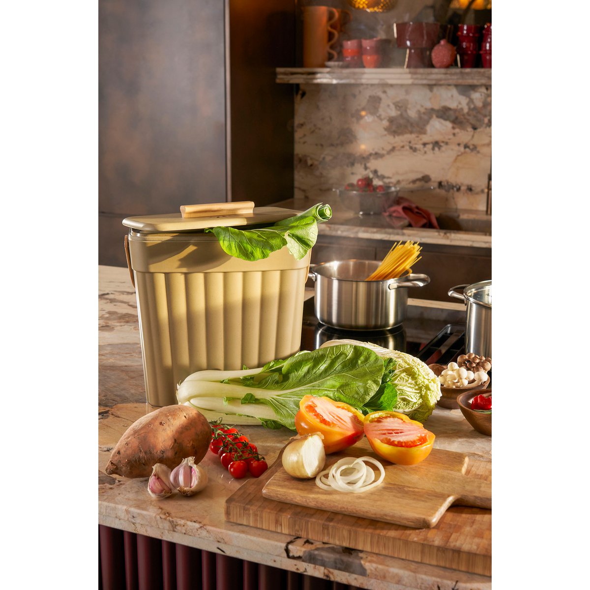 Op zoek naar een mooie afvalemmer voor in de keuken, de badkamer of het kantoor? Dan is de Manja afvalemmer van Mica Decorations perfect. De prullenbak heeft een groene kleur met bruine details. De afvalemmer heeft een handige hendel waardoor je hem makkelijk als GFT-afvalbak kunt gebruiken. Verder heeft de emmer een afsluitbare deksel waardoor onaangename geuren zich niet snel verspreiden. Hij is gemaakt van bamboevezels, houtvezels en polyresin en de afmetingen zijn L29 x B16 x H29 cm. In de prullenbak past 7 liter.