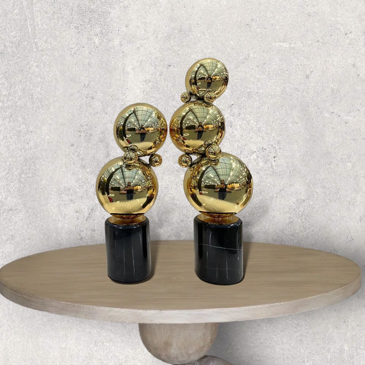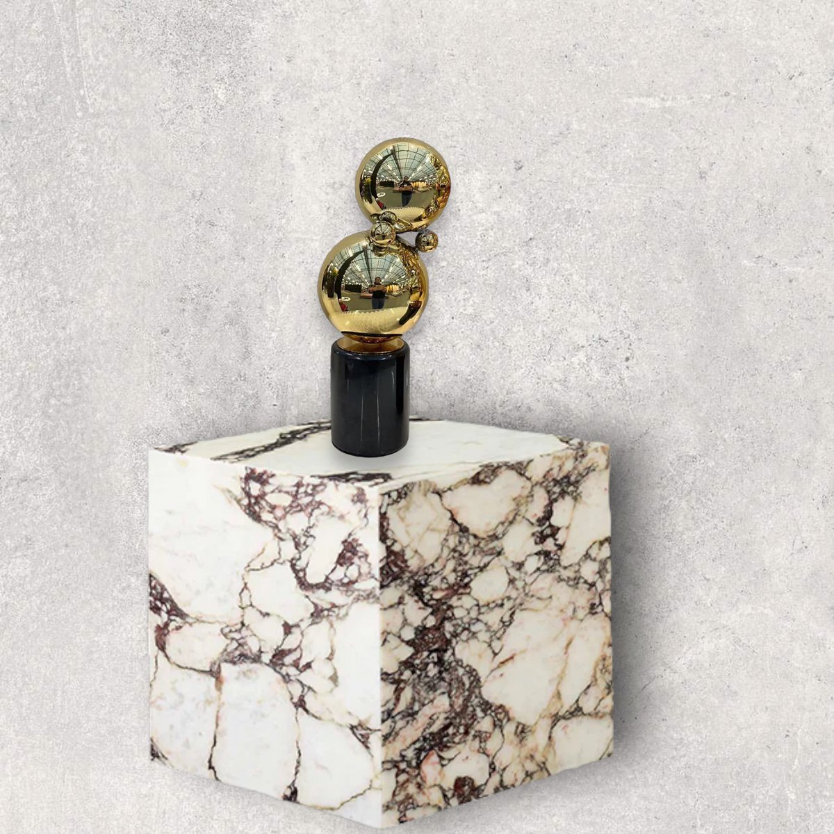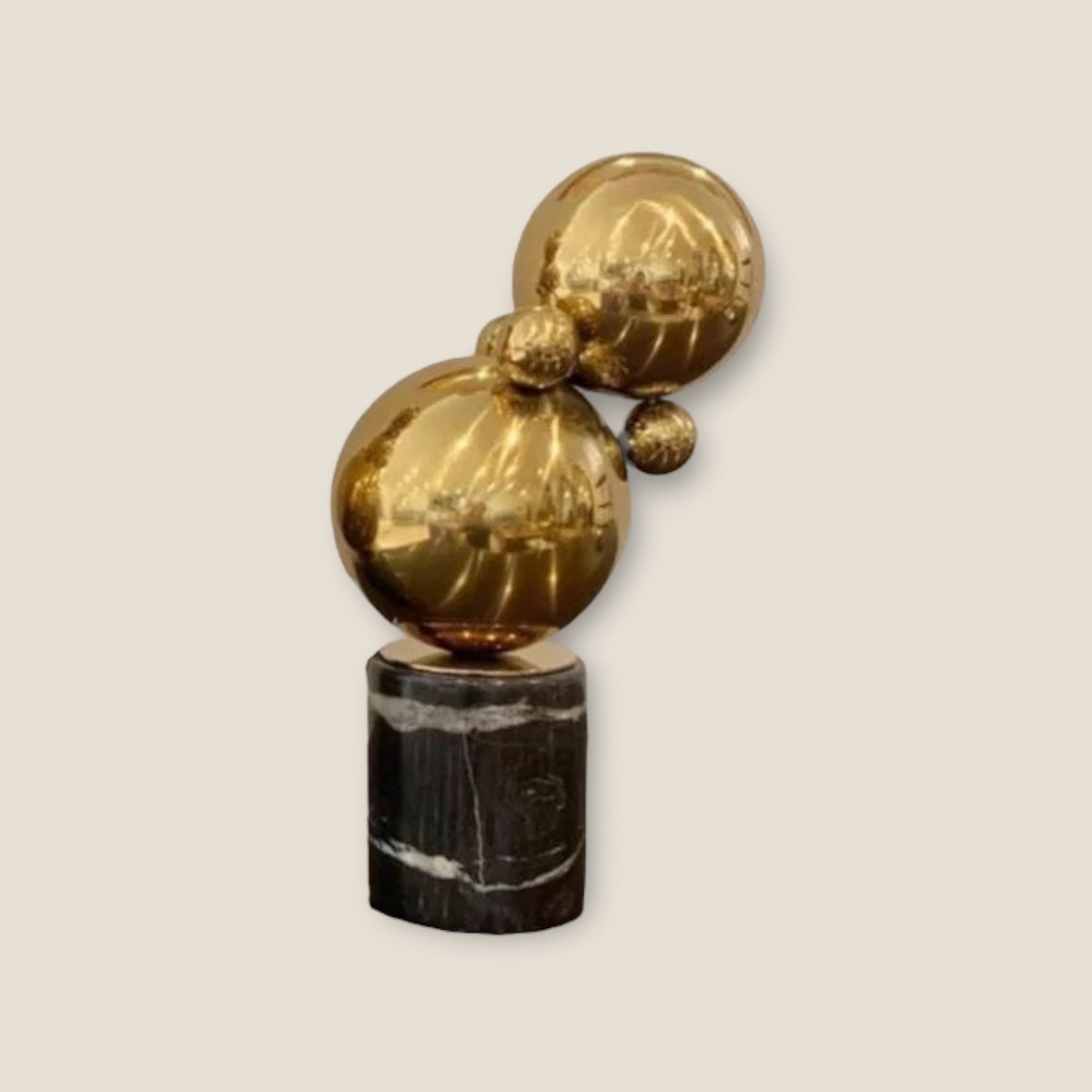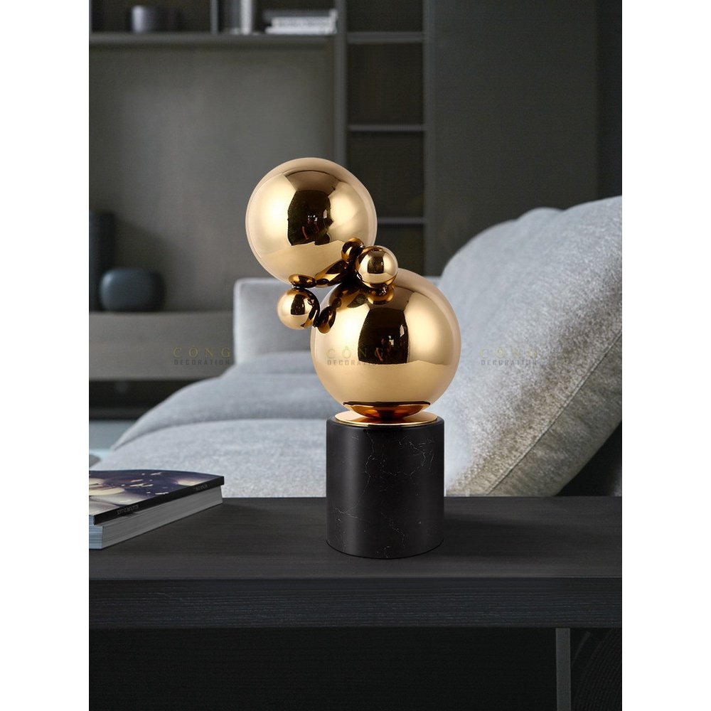 Set van twee zwarte marmeren tafeldecoraties met accessoires van messing ballen. Onze producten zijn handgemaakt.