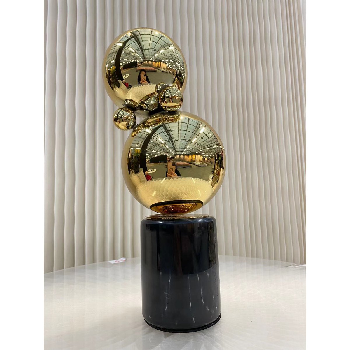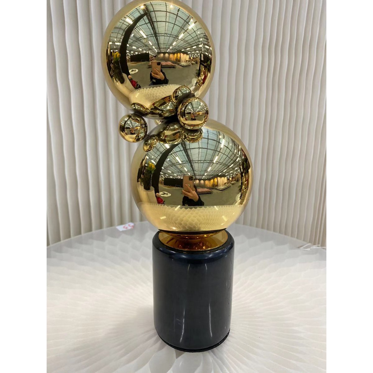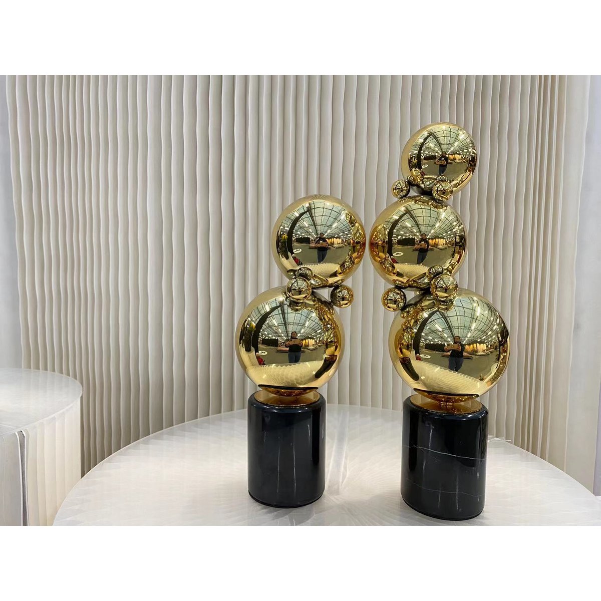 Set van twee zwarte marmeren tafeldecoraties met accessoires van messing ballen. Onze producten zijn handgemaakt.