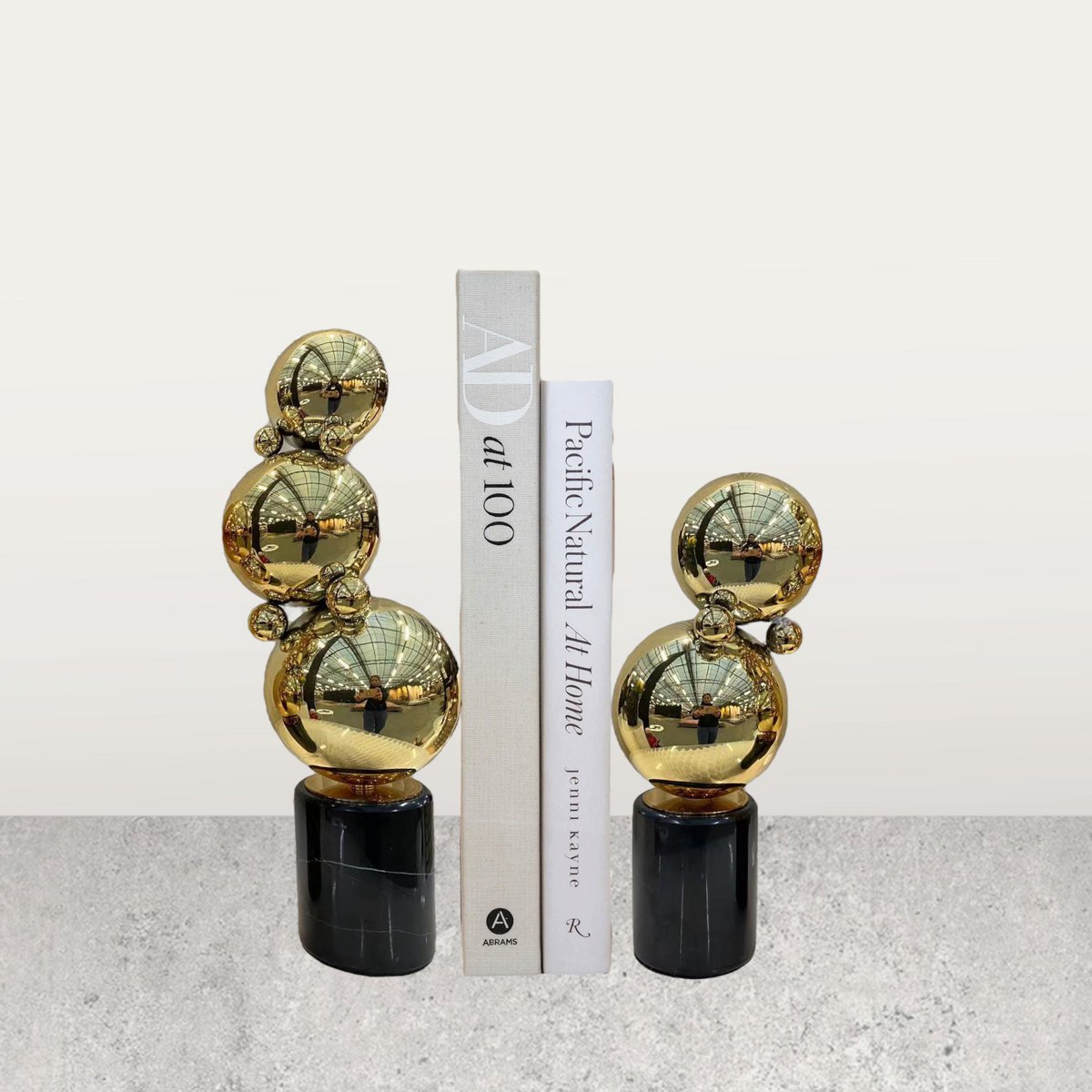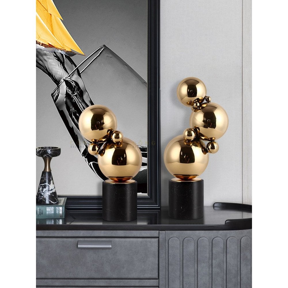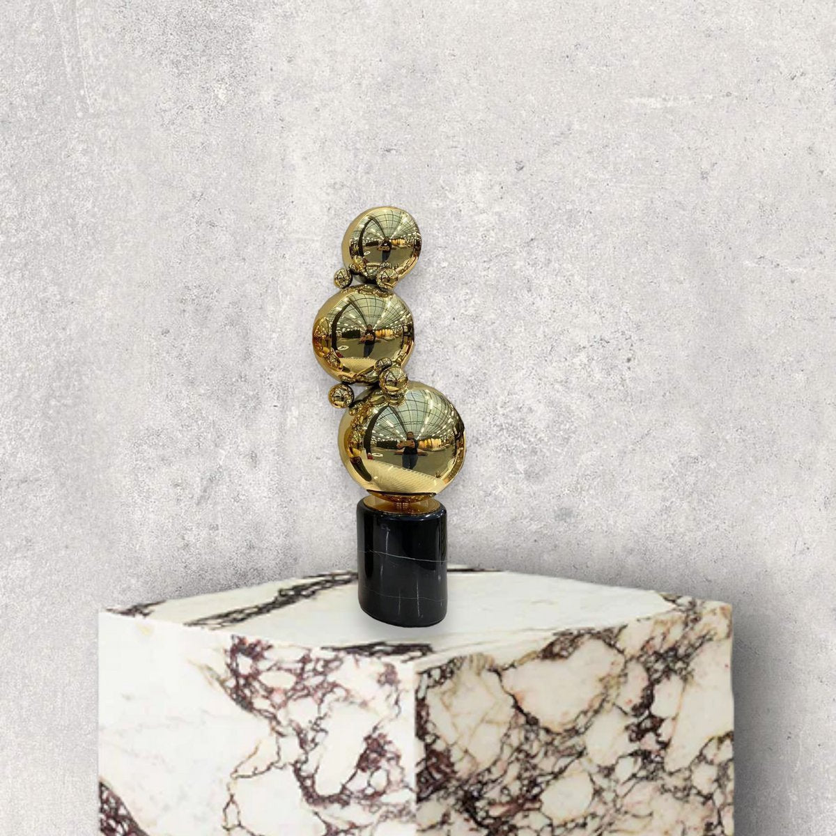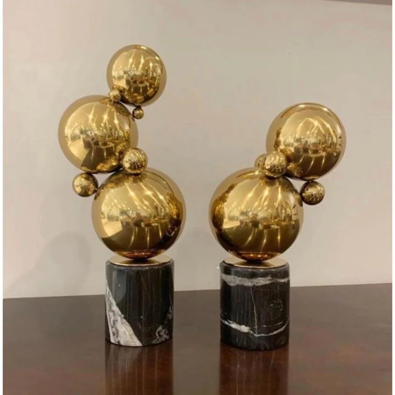 Set van twee zwart marmeren tafeldecoraties met messing bollenaccessoires. Onze producten zijn handgemaakt.