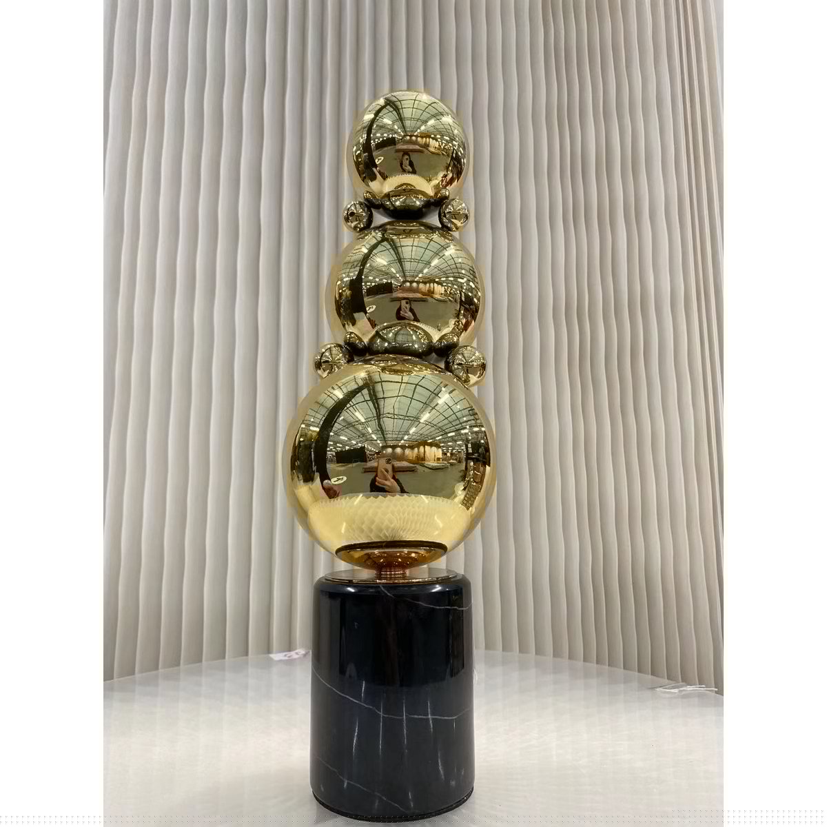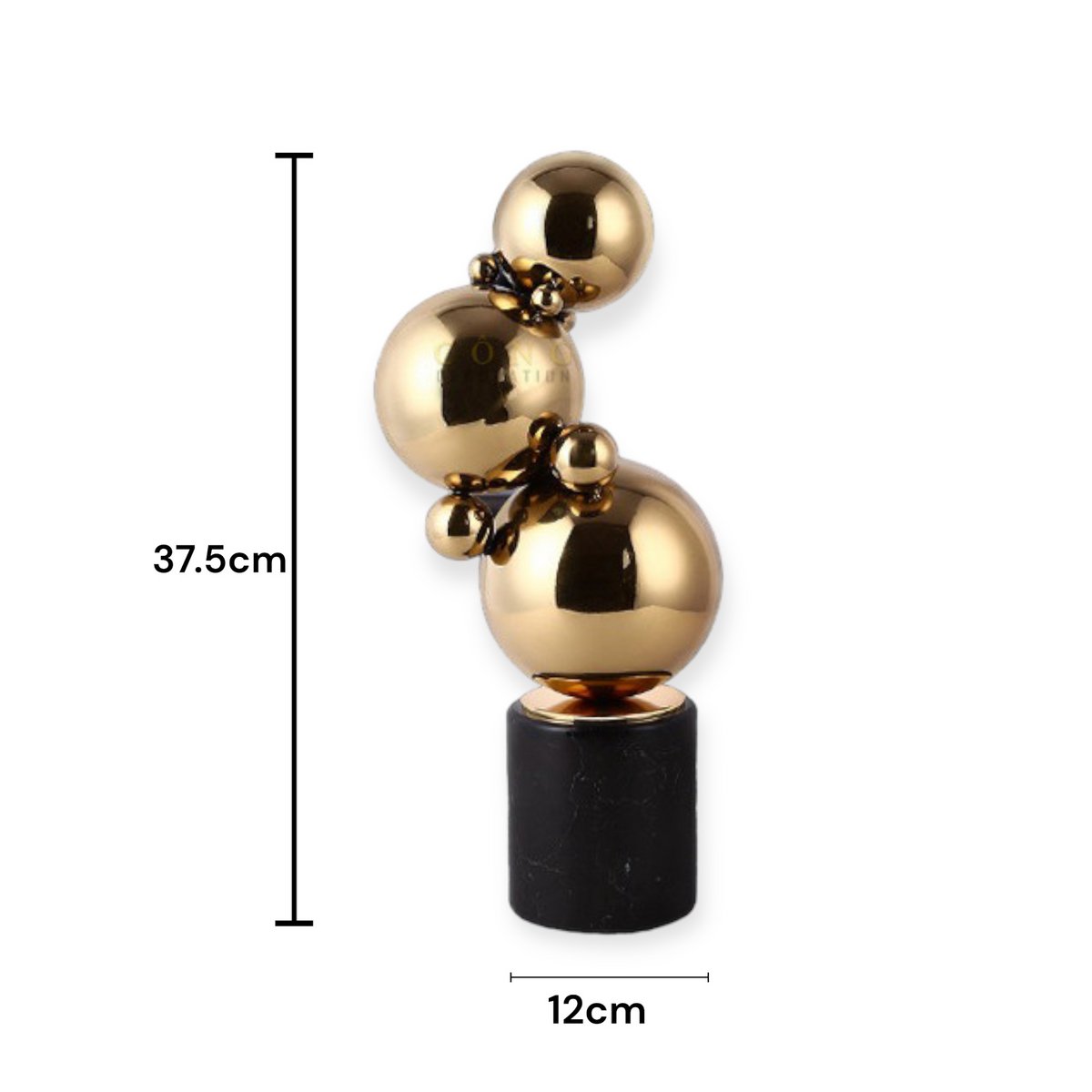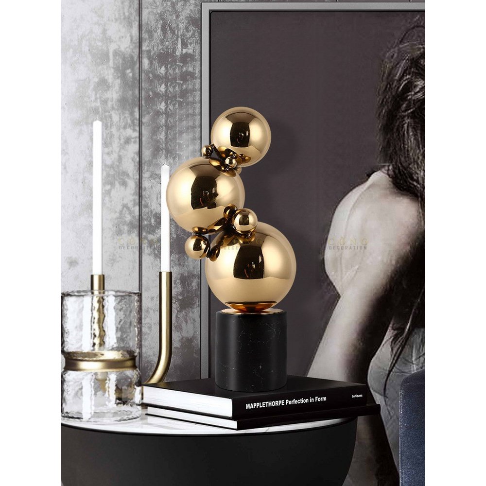 Set van twee zwart marmeren tafeldecoraties met messing bollenaccessoires. Onze producten zijn handgemaakt.