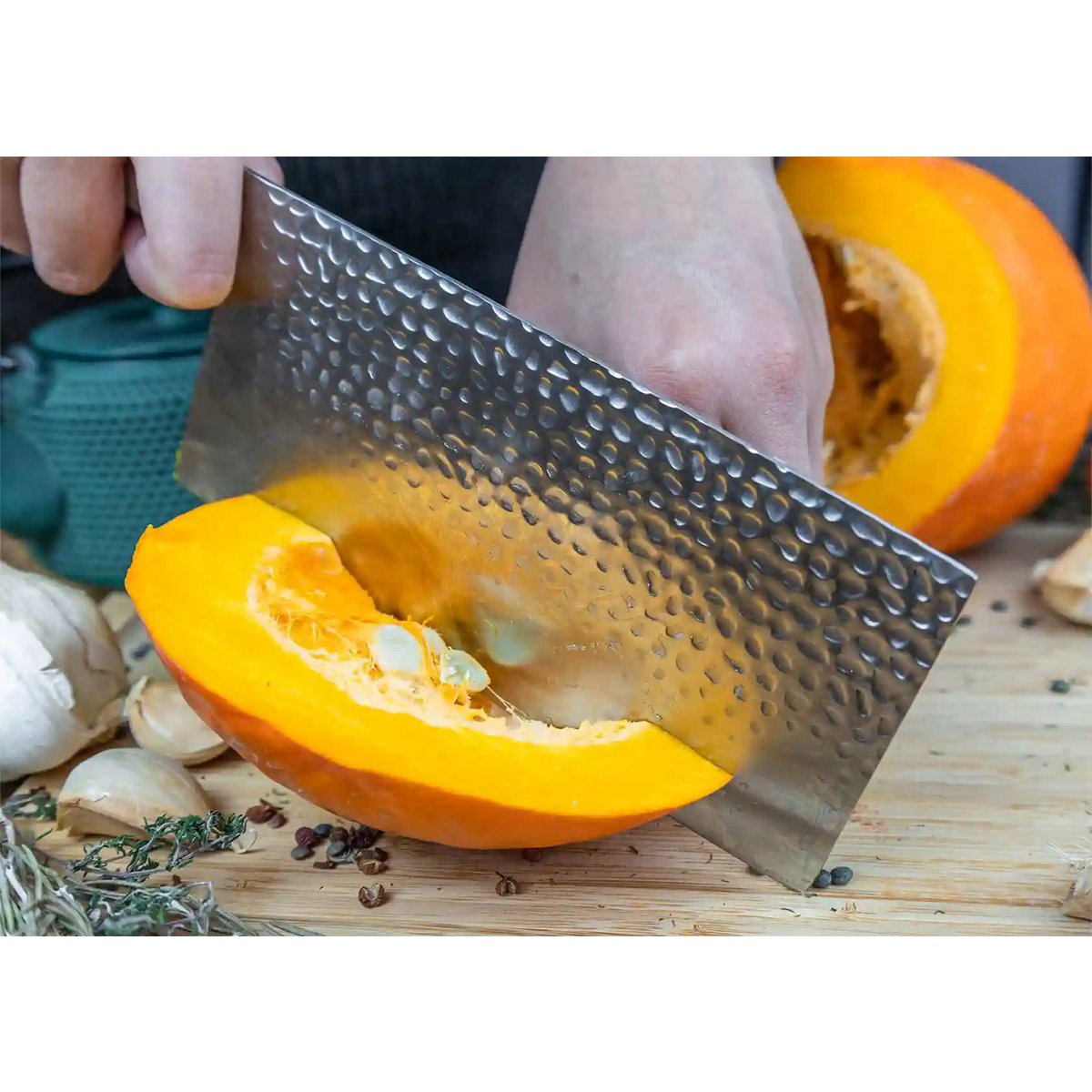 Het platte oppervlak van het mes is ook een geweldig hulpmiddel voor het pletten van knoflook, noten of gember.