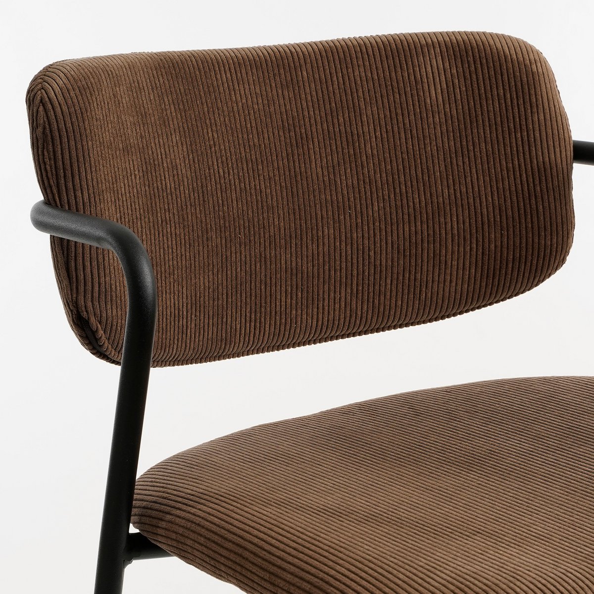 De Nanet barkruk van Mica Decorations staat mooi in contrast met het zwarte, metalen frame en de zachte stof. De zitting is gemaakt van ribstof, fluweel en heeft een prachtige donkerbruine kleur. Hierdoor is de barkruk industrieel en daarnaast ook luxueus en comfortabel. Stijlvol aan een bar of in je keuken. De barkruk met armleuning heeft een afmeting van L53 x B46 x H91 cm. De zithoogte is 65 cm. Leuk om te combineren met meerdere barkrukken uit de Nanet collectie van Mica Decorations.