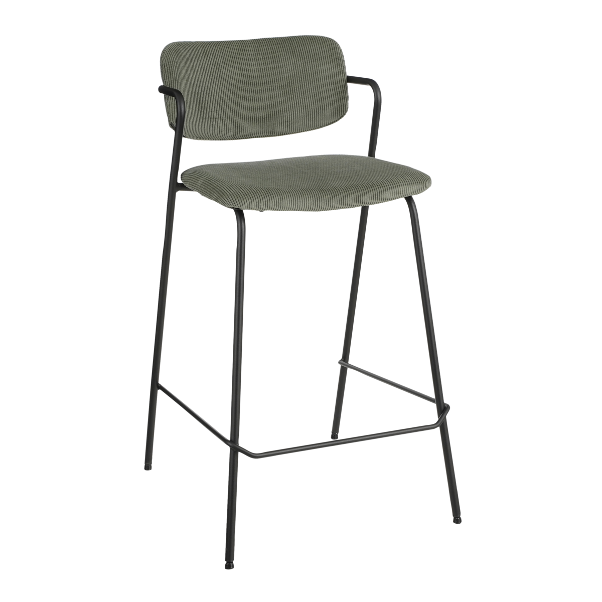 De Nanet barkruk van Mica Decorations staat mooi in contrast met het zwarte, metalen frame en de zachte stof. De zitting is gemaakt van ribstof, fluweel en heeft een prachtige donkergroene kleur. Hierdoor is de barkruk industrieel en daarnaast ook luxueus en comfortabel. Stijlvol aan een bar of in je keuken. De barkruk met armleuning heeft een afmeting van L53 x B46 x H91 cm. De zithoogte is 65 cm. Leuk om te combineren met meerdere barkrukken uit de Nanet collectie van Mica Decorations.