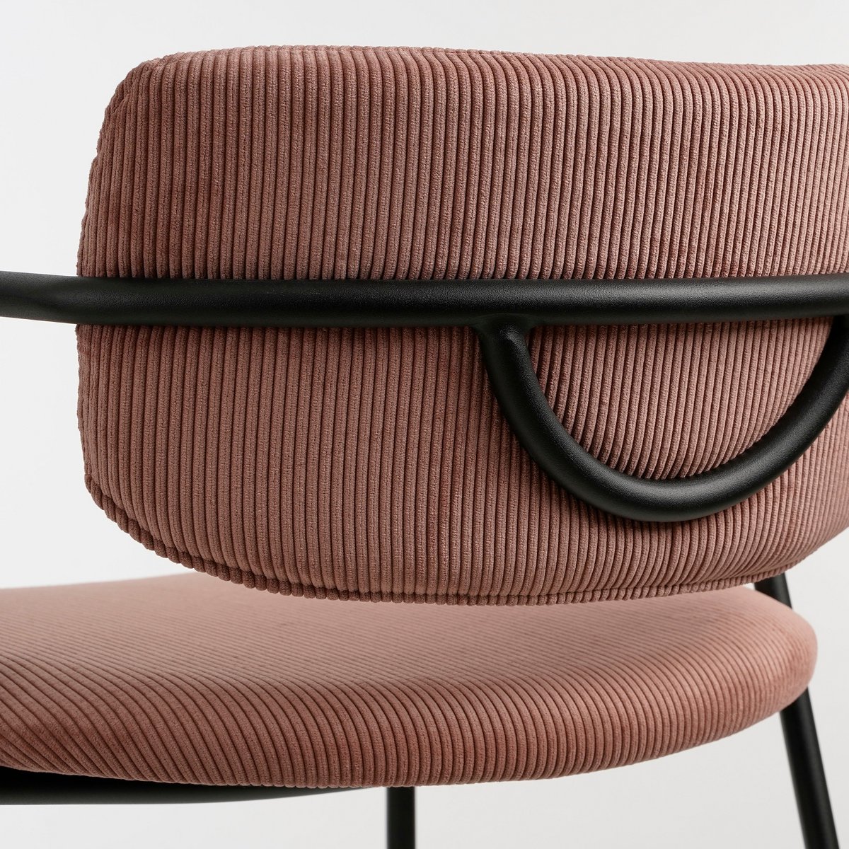 De Nanet barkruk van Mica Decorations staat mooi in contrast met het zwarte, metalen frame en de zachte stof. De zitting is gemaakt van ribstof, fluweel en heeft een prachtige roze kleur. Hierdoor is de barkruk industrieel en daarnaast ook luxueus en comfortabel. Stijlvol aan een bar of in je keuken. De barkruk met armleuning heeft een afmeting van L53 x B46 x H91 cm. De zithoogte is 65 cm. Leuk om te combineren met meerdere barkrukken uit de Nanet collectie van Mica Decorations.