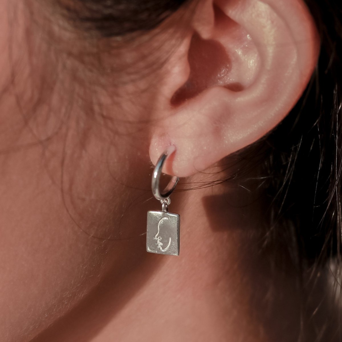 Met deze unieke, gedetailleerde oorbellen van 925 zilver geef jij jouw outfit de finishing touch. Het gegraveerde, abstracte gezicht op de hanger is een minimalistische blikvanger in trendy boho-stijl.