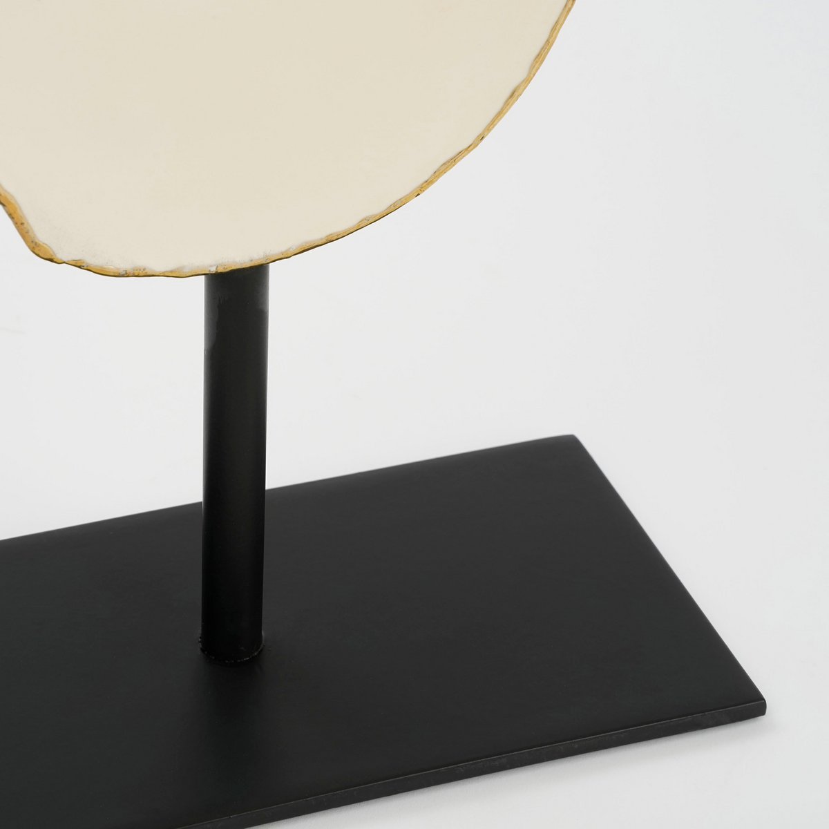 Maak een statement in je interieur met dit stijvolle ornament op voet uit de collectie van Mica Decorations. De elegante vorm en de stevige metalen constructie maken het een ware blikvanger. Het neutrale, crèmekleurige ontwerp wordt verfraaid door een gouden omranding waardoor het ornament een onmiskenbaar chique uitstraling krijgt. Met zijn afmetingen van 20 cm lang, 10 cm breed en 40 cm hoog past deze decoratie perfect in een vakkenkast, op een sidetable of tv-meubel. Ook stijlvol om te combineren met meerdere woondecoratie ornamenten van Mica Decorations voor sfeervol geheel!