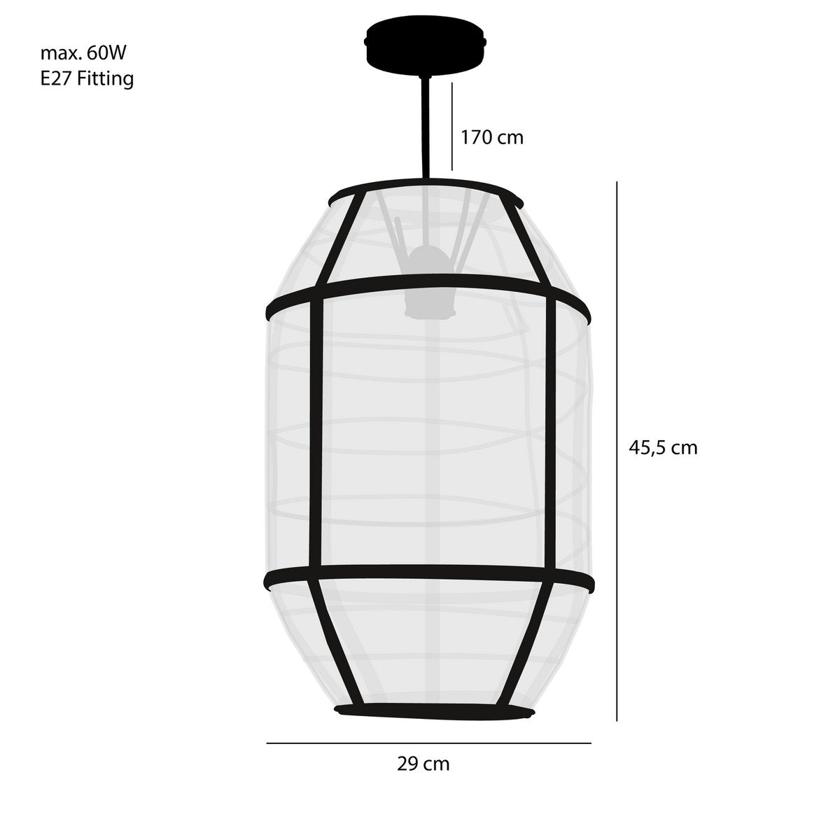 Met het mooie design van de Pella hanglamp van Mica Decorations creëer je direct een rustgevende sfeer in huis. Het frame heeft een zwarte kleur, maar de rest van de lampenkap is gemaakt van natuurlijk linnen in een off white kleur. Dit zorgt voor een leuk lijnenspel. Deze bijzondere look past goed in de trendy japandi stijl, maar door de neutrale uitstraling kan je de lamp eigenlijk met van alles combineren. De Pella hanglamp is verkrijgbaar in verschillende varianten en geschikt voor een E27 lichtbron van maximaal 60 Watt (niet inbegrepen). De afmetingen van dit model zijn H45,5 x Ø29 cm.