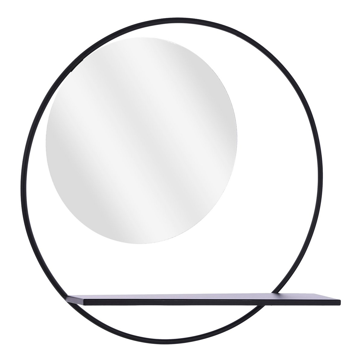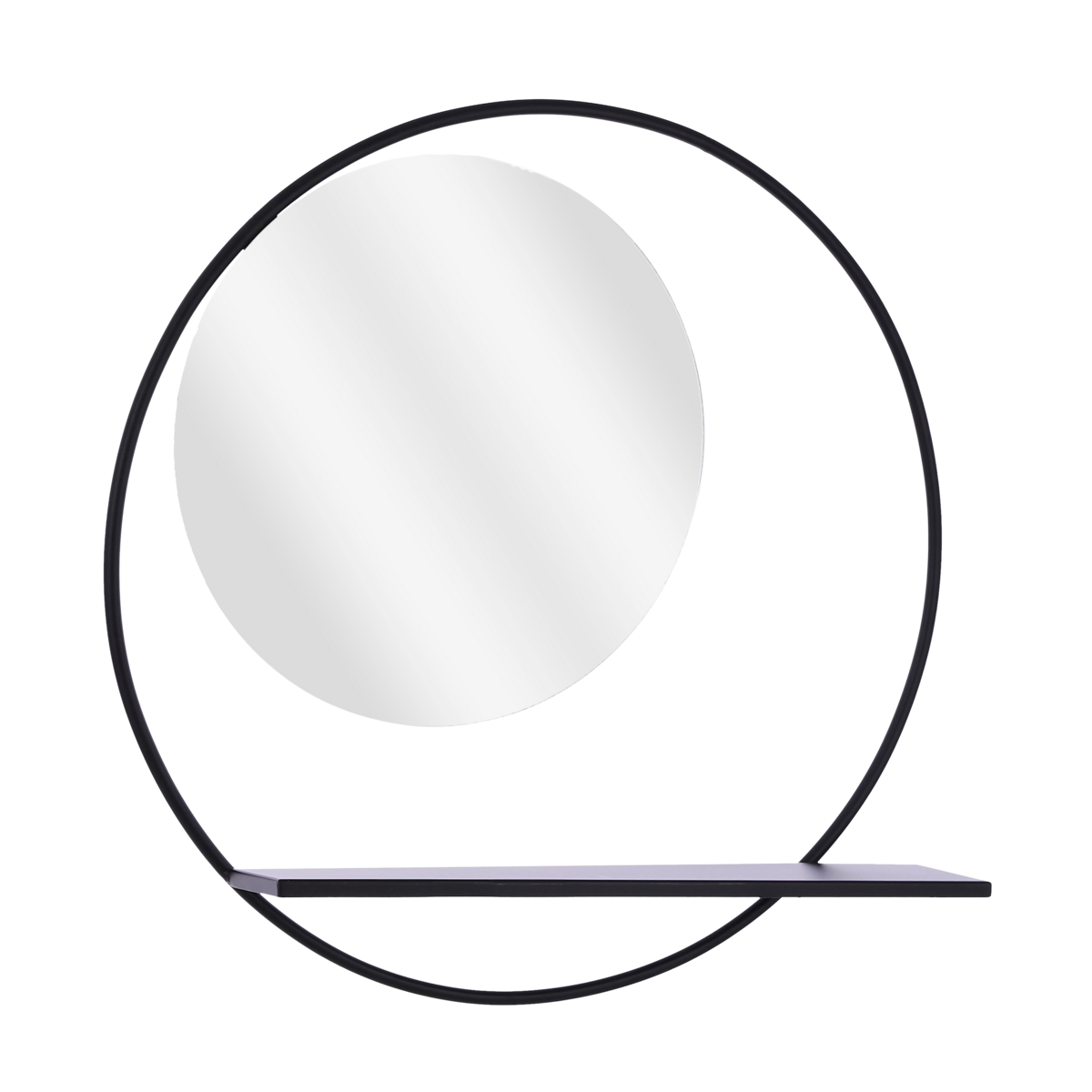 Het moderne design van de Phoenix spiegel uit de collectie van Mica Decorations is een aanwinst voor iedere lege muur. Het is bijna een kunstwerk! Daarnaast is hij door het handige plankje om wat spullen op te leggen ook nog eens erg praktisch. Ideaal voor in de hal of de slaapkamer. Het frame is gemaakt van metaal en heeft een zwarte kleur. Erg trendy! Waar hang jij hem op? De spiegel heeft een diameter van 36 cm en het plankje is L49 x B10 cm. In totaal heeft het gehele item een diameter van 58 cm met een diepte van 11 cm.