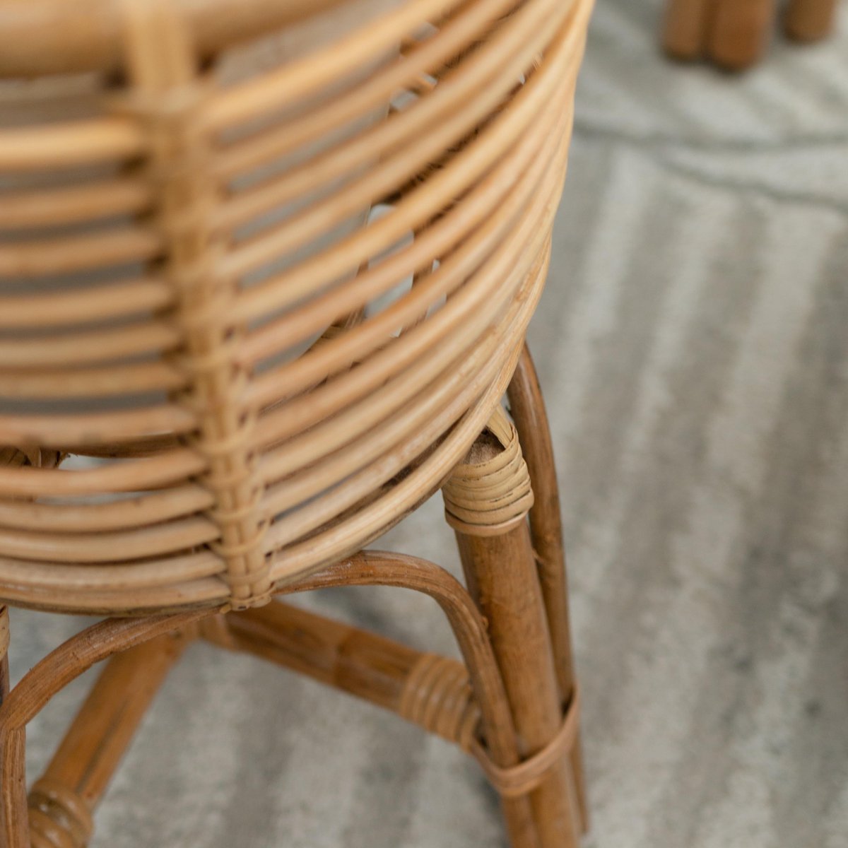 Deze rotan plantenstandaard in bohostijl verfraait je huis met zijn minimalistische, natuurlijke uitstraling. Planten brengen leven in een kamer en zijn een opvallende accessoire, vooral in combinatie met deze handgemaakte plantenstandaard.