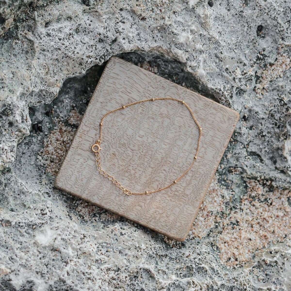 Deze verguld zilveren armband is ongelooflijk zorgvuldig met de hand gemaakt van filigraan kettingschakels, die prachtig zijn versierd met acht grotere, bolvormige elementen. Hierdoor ziet het er minimalistisch en eenvoudig uit en harmonieert het met elke outfit waaraan het de laatste speciale touch geeft. De armband heeft daarom zowel in het dagelijks leven op het werk of in de stad als in de vrije tijd bij het uitgaan de perfecte uitstraling. Het kan ook perfect gecombineerd worden met andere gouden sieraden in een gestapelde look. Dankzij de kettingverlenging is hij in maat verstelbaar en past hij bijna om elke pols. Het wordt afgesloten met een veerring.