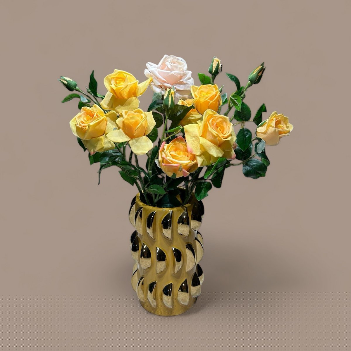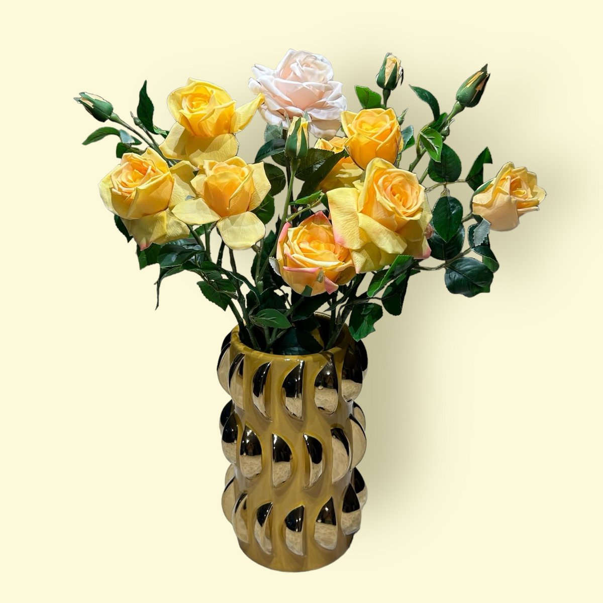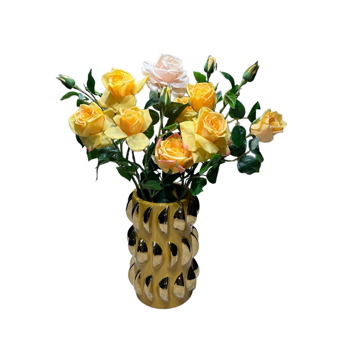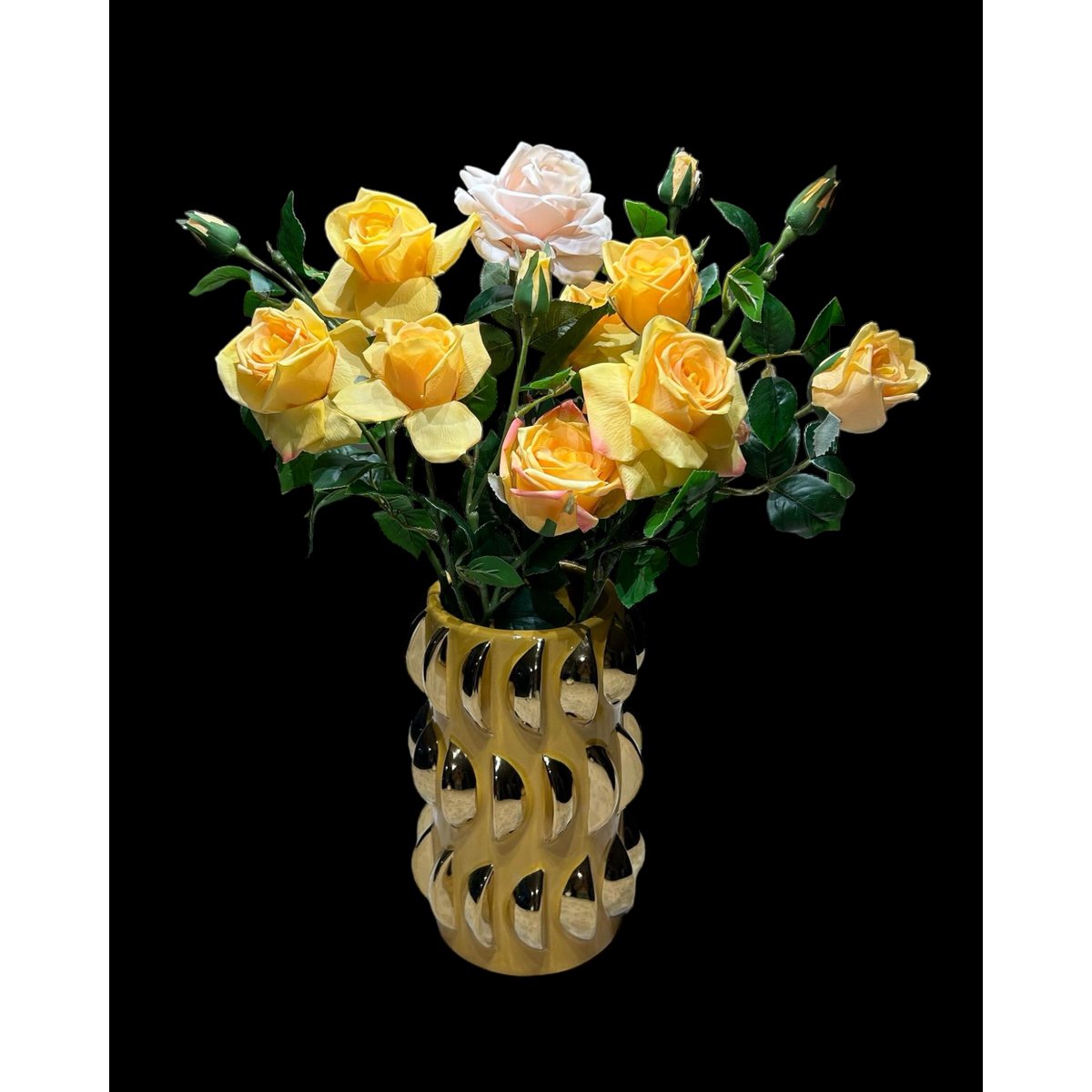 - Je hebt ook de mogelijkheid om hem te combineren met onze tactiele kunstlichtgele rozenstelen, of bloemen in verschillende kleuren, waardoor een strakke, verfijnde en luxueuze uitstraling ontstaat