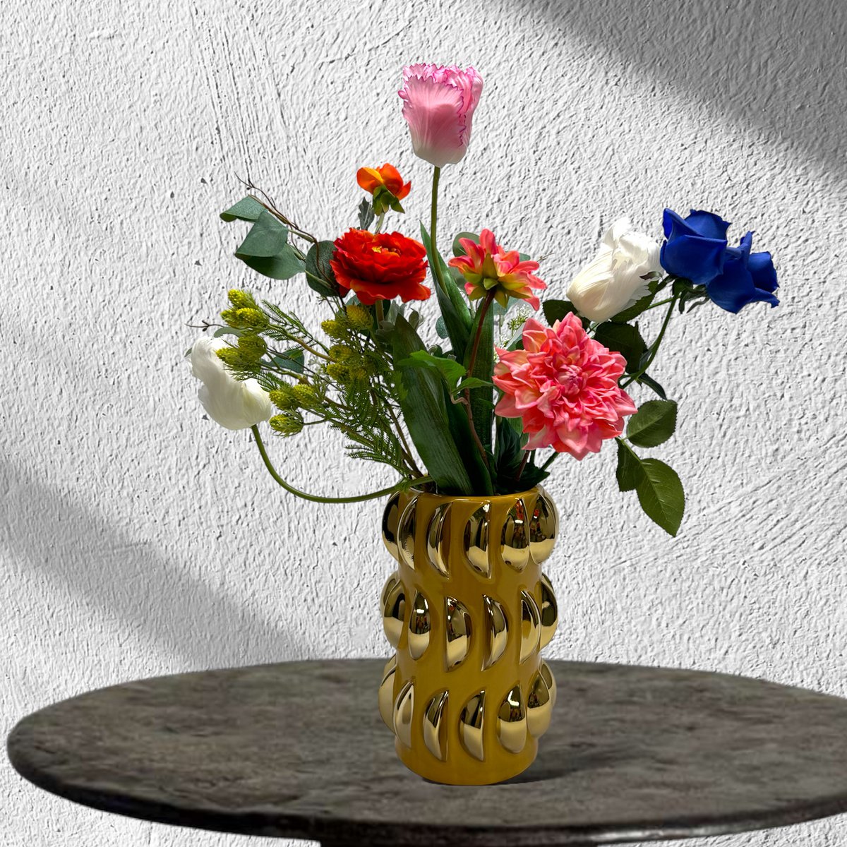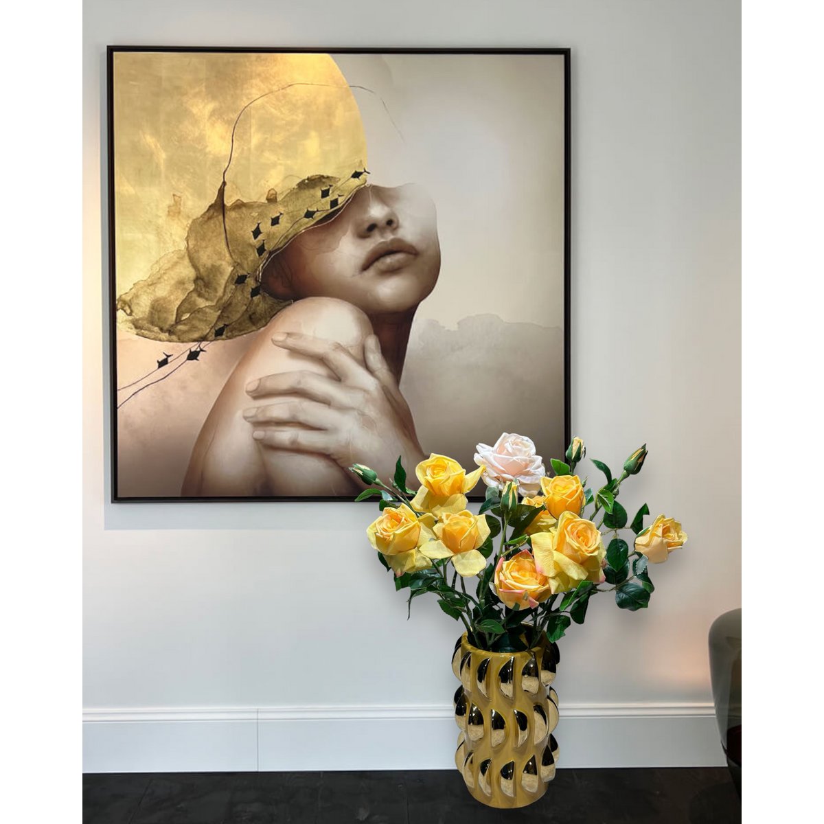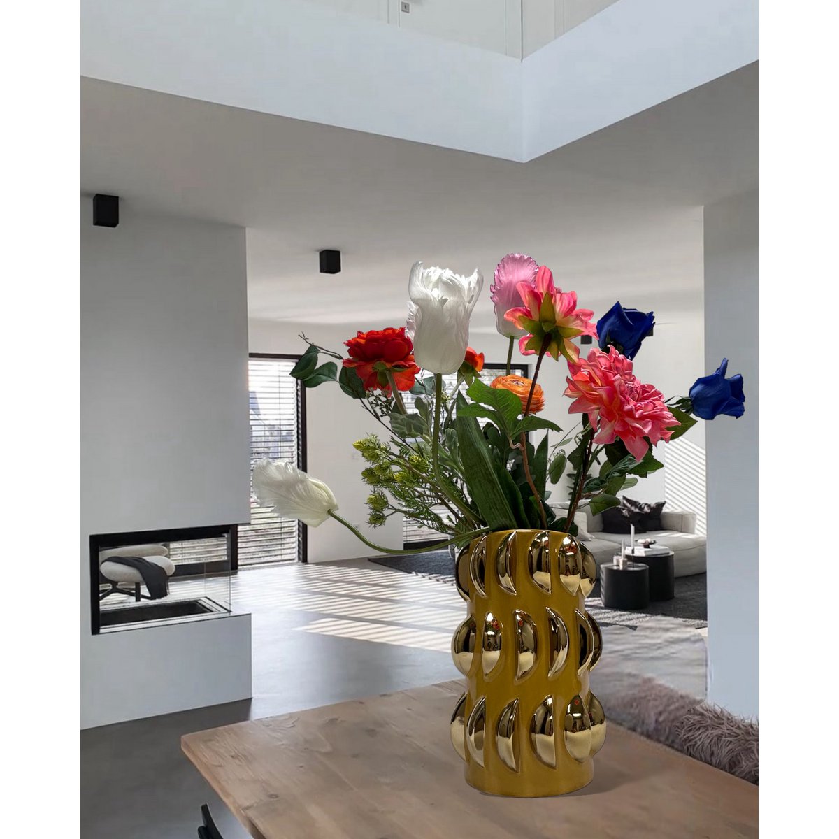 - Je hebt ook de mogelijkheid om hem te combineren met onze tactiele kunstlichtgele rozenstelen, of bloemen in verschillende kleuren, waardoor een strakke, verfijnde en luxueuze uitstraling ontstaat