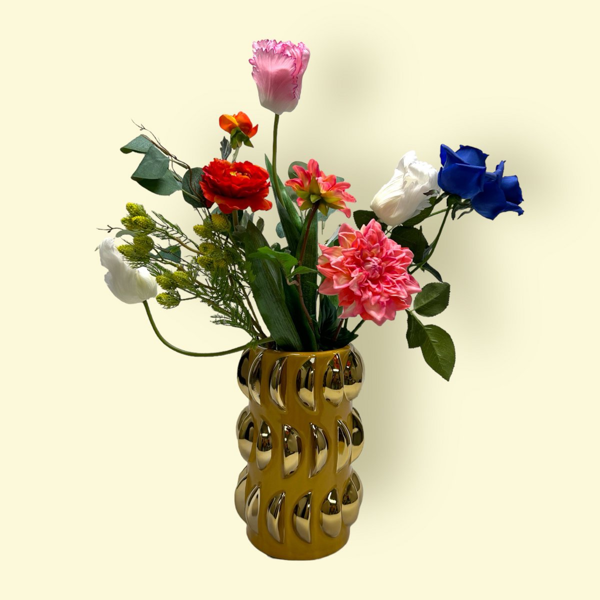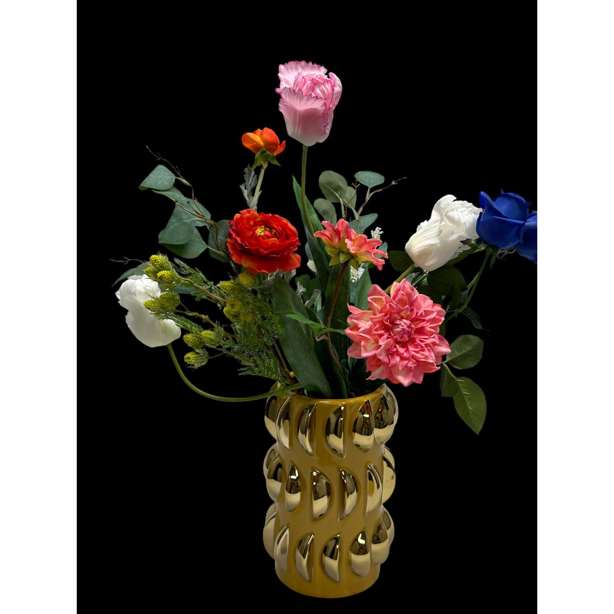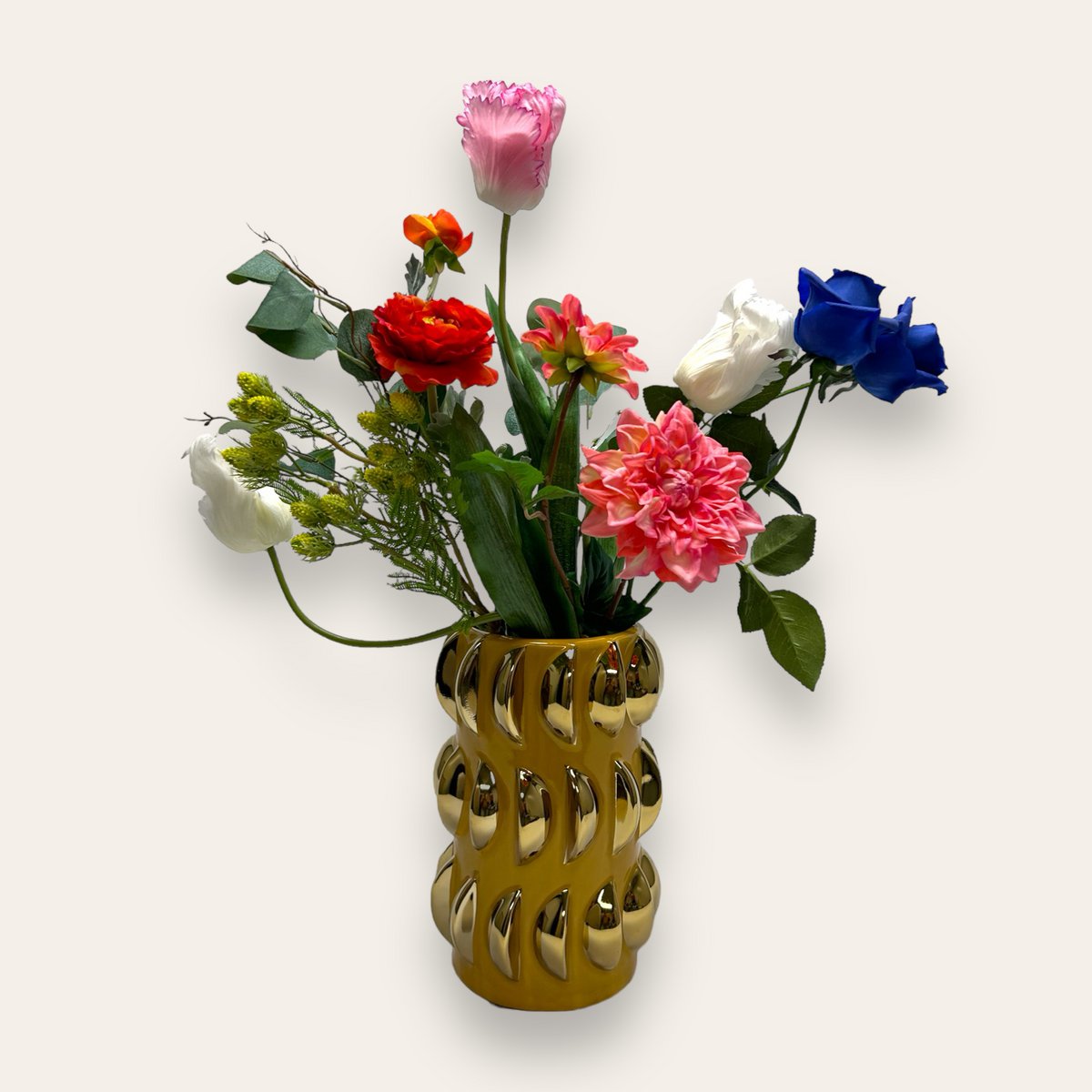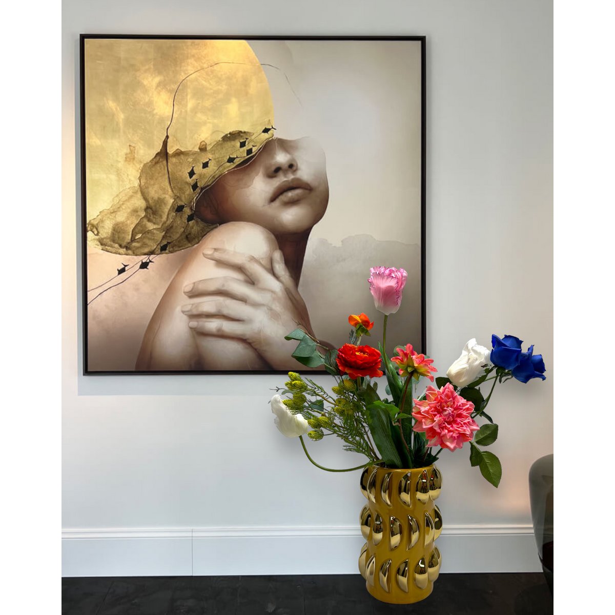 - Je hebt ook de mogelijkheid om hem te combineren met onze tactiele kunstlichtgele rozenstelen, of bloemen in verschillende kleuren, waardoor een strakke, verfijnde en luxueuze uitstraling ontstaat
