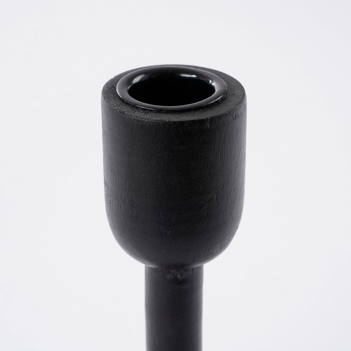 Tartan Kandelaar - H21 x Ø9 cm - Mangohout - Zwart