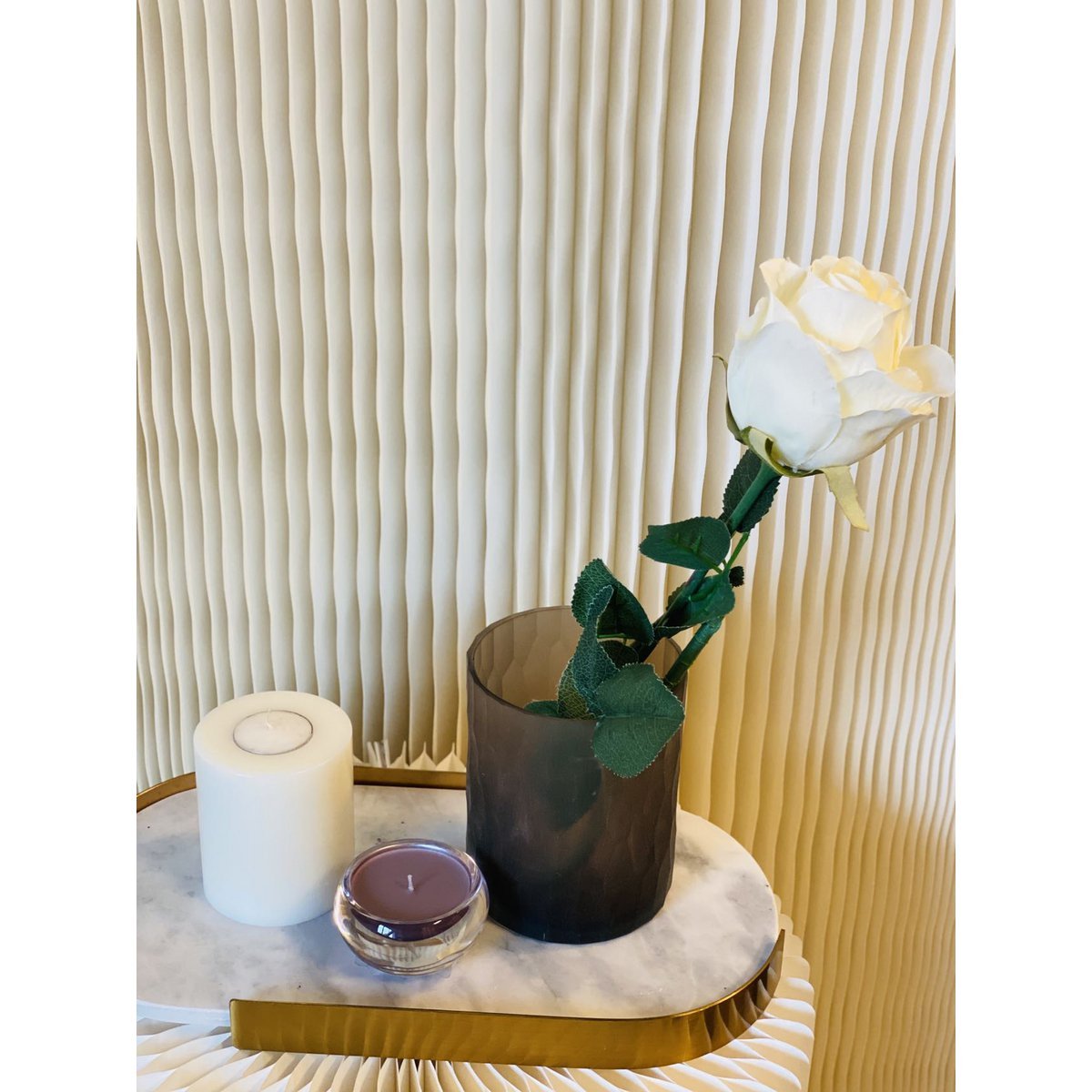 Geparfumeerd met klimopessentie. De kaars ‘Ivy’ heeft een geur van gemiddelde intensiteit met een houtachtige geur die het frisse, groene aroma van de groene, klimmende wijnstok oproept. Zodra hij wordt aangestoken, onthult hij delicate bloemige tonen. De kaars is gemaakt van natuurlijke was met één katoenen lont en wordt gepresenteerd in een geglazuurd terracotta vat met een gestempelde basis.