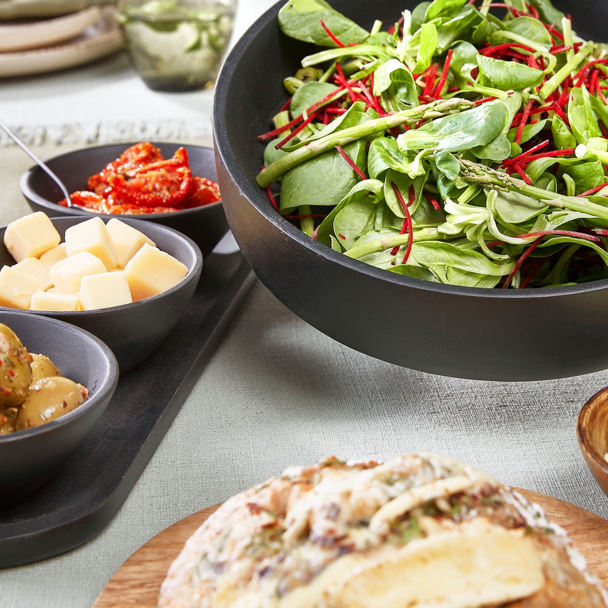 De Tomar schaal uit de collectie van Mica Decorations mag niet ontbreken in je keuken. De grote schaal is gemaakt van FSC®-gecertificeerd mangohout en heeft een mooie, zwarte kleur. De schaal is rond en ideaal om wat fruit in op te bergen of om salades en wat stokbrood te serveren. De afmetingen van deze schaal zijn H6 x Ø26 cm.
