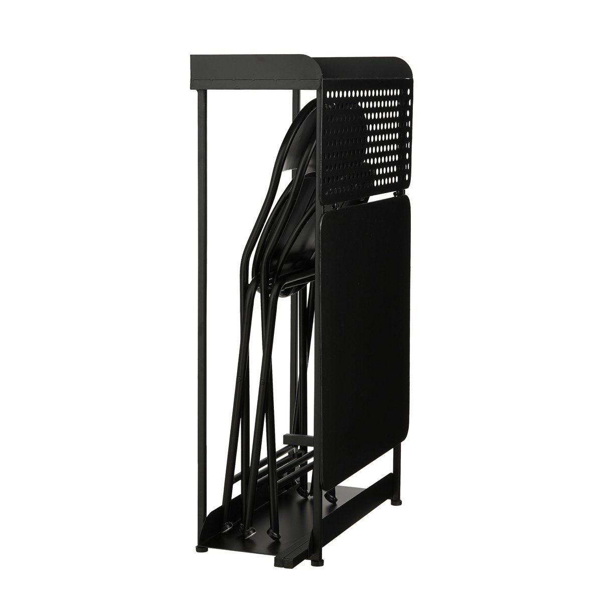 Maak van je balkon een comfortabele plek met deze Torre balkonset van Mica Decorations. De balkonset is gemaakt van stevig zwart metaal en bestaat uit twee stoelen en een tafel. Wanneer de tafel is uitgeklapt ontstaat er extra ruimte bovenin waardoor je nog meer ruimte hebt. Perfect voor een balkon of een kleine buitenruimte! Het grote voordeel is dat je deze balkonset ook weer eenvoudig kunt inklappen en opbergen na gebruik of tijdens de wintermaanden. De twee stoelen hebben een afmeting van L39,5 x B50 x H79,5 cm en de tafel heeft een afmeting L58 x B87 x H105 cm.