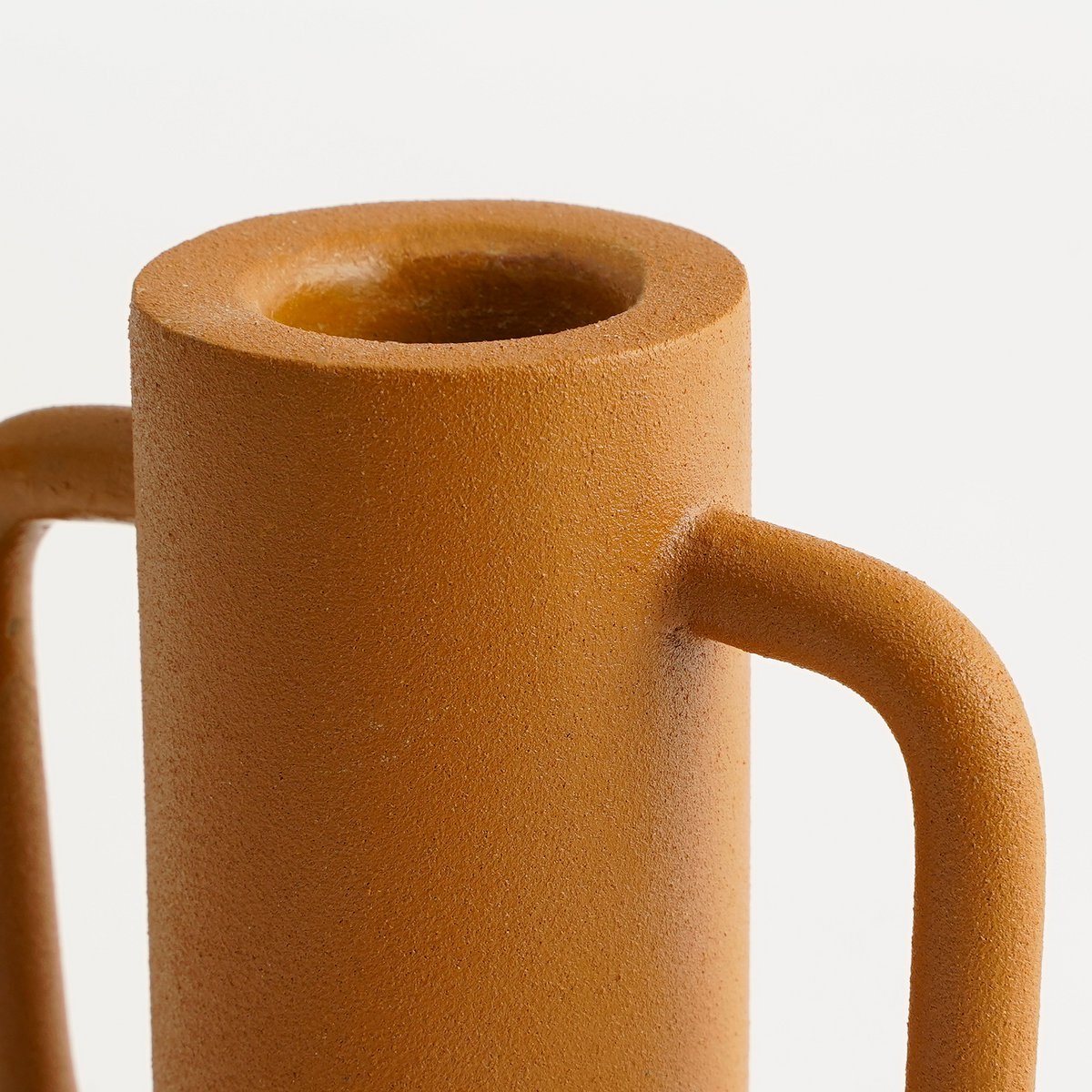 Met deze Ula kandelaar van Mica Decorations haal je een eyecatcher in huis. De kandelaar van metaal is afgewerkt in een lichtbruine kleur en heeft een matte, ruwe afwerking. De kandelaar valt op door de stijlvolle handvaten. Past perfect in een modern interieur! De kandelaar is 12 cm hoog en heeft een diameter van 8 cm. Ideaal voor een dinerkaars! Ook leuk om te combineren met meerdere kandelaren uit de Ula collectie van Mica Decorations.