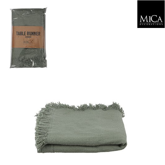 Met de Xavie tafelloper uit de collectie van Mica Decorations is je tafel extra beschermd en tegelijkertijd leuk gedecoreerd. De katoenen loper met speelse franjes langs de rand vrolijkt jouw tafel namelijk in een mum van tijd op. Zeker in combinatie met de mooie, groene kleur! Niet de goede kleur? De Xavie tafelloper is verkrijgbaar in verschillende varianten. Leuk om te combineren met ander tafeltextiel uit de Xavie collectie! De afmetingen van de loper zijn L180 x B45 cm.