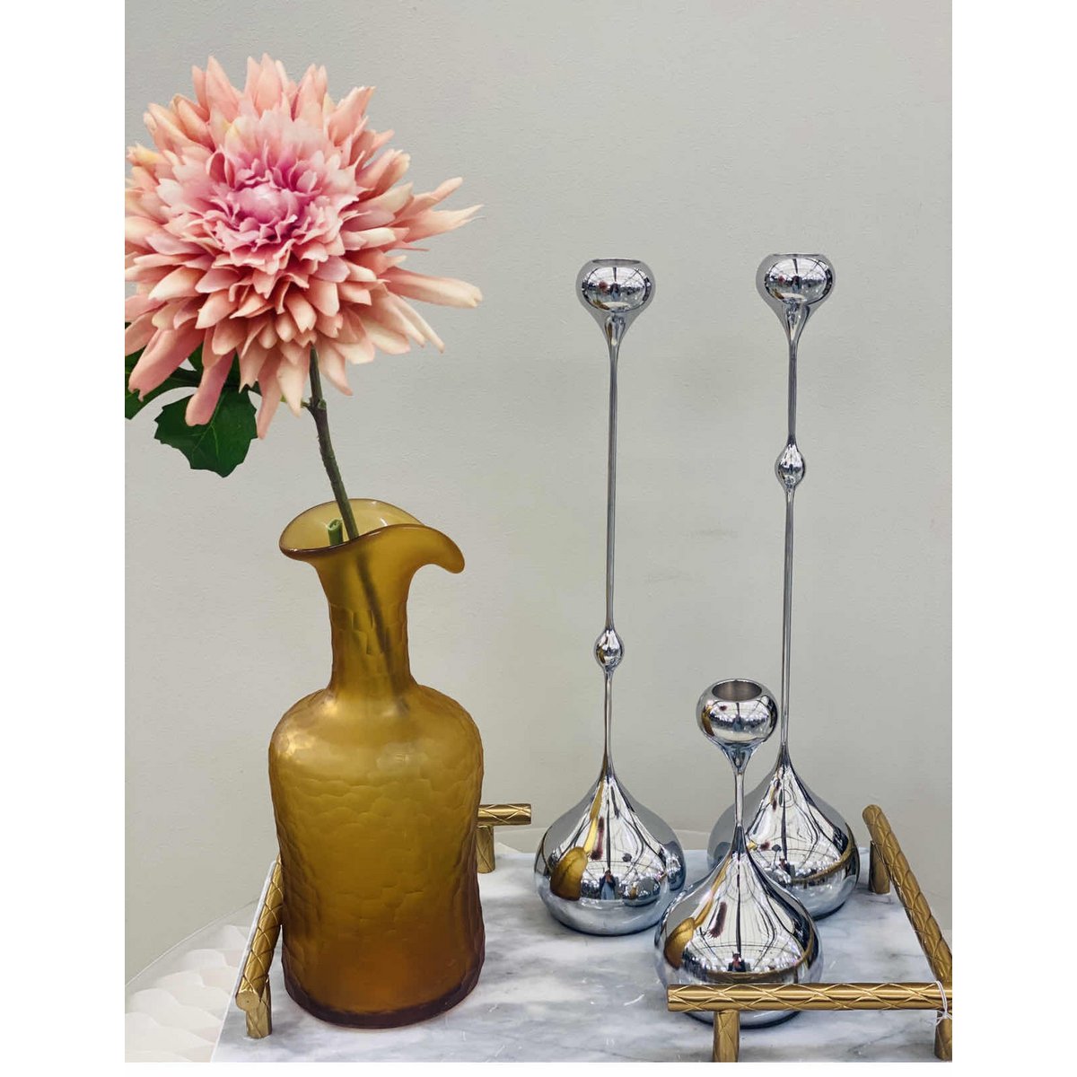 Deze kandelaars van massief hooggepolijst nikkel, ontdekt in China, voegen een sculpturale uitstraling toe aan de eettafel of schoorsteenmantel. Elk kwaliteitsstuk is handgemaakt in China. Afmetingen: H 34 cm x D 3,15 x W 7 cm inch